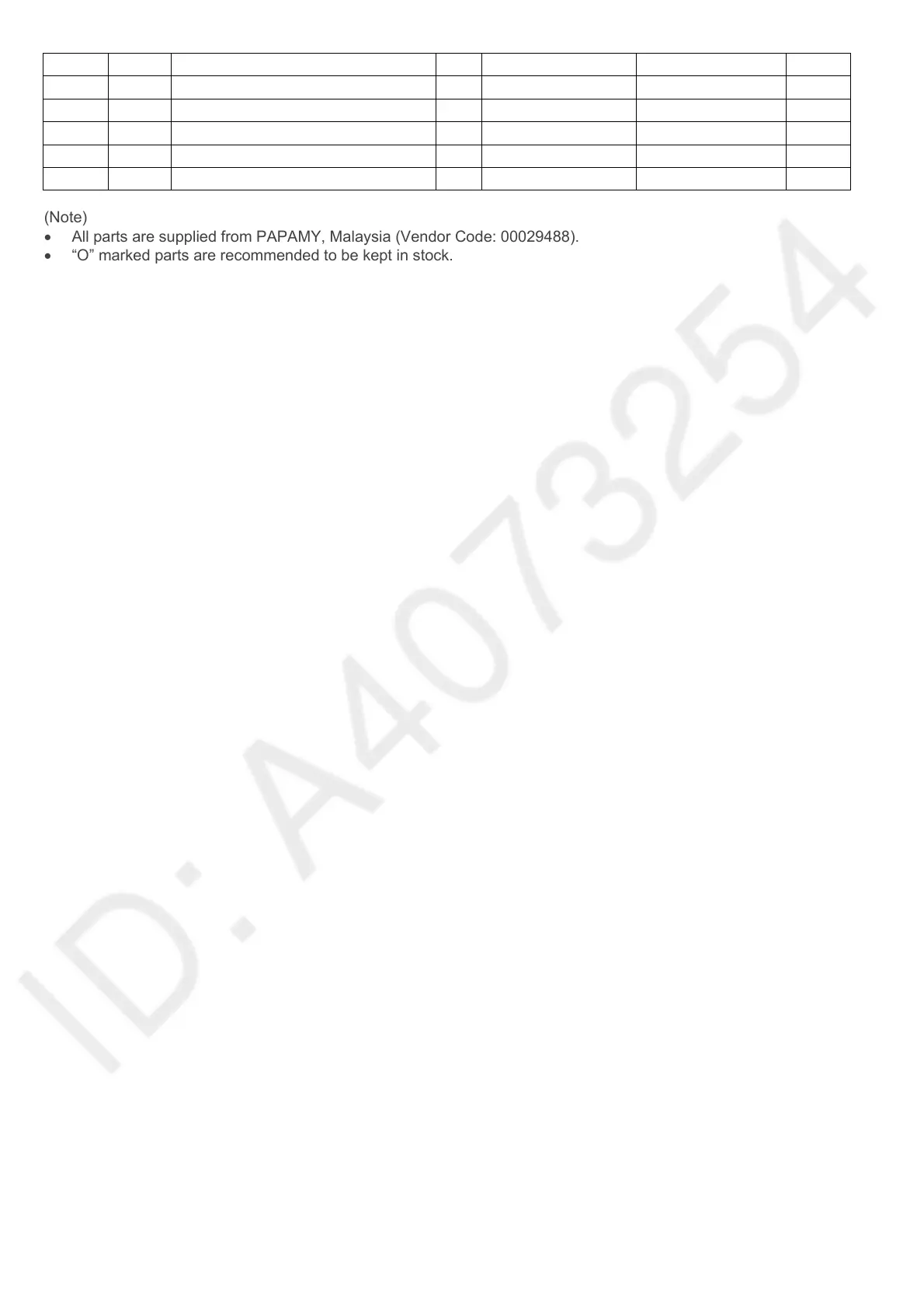 • All parts are supplied from PAPAMY, Malaysia (Vendor Code: 00029488).
