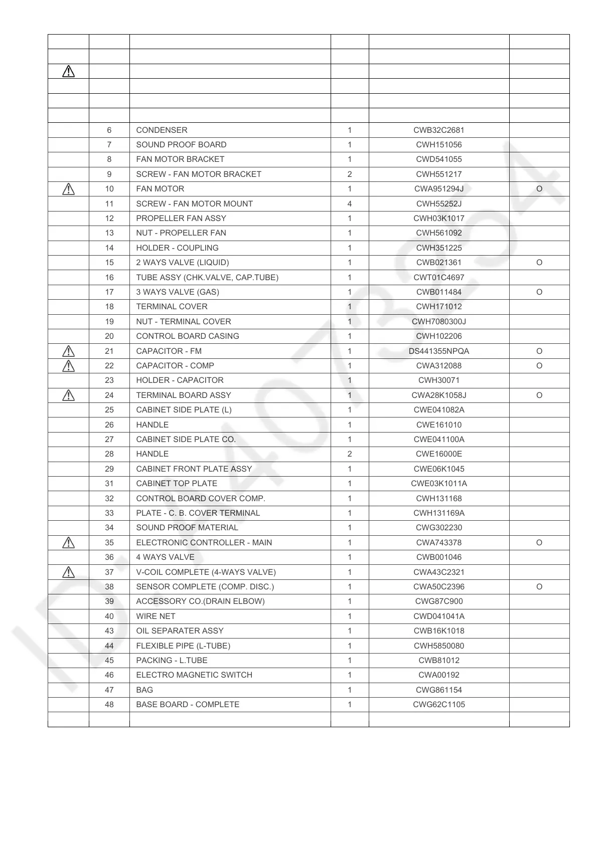SAFETY REF. NO. PART NAME & DESCRIPTION QTY. CU-A28PKD REMARK