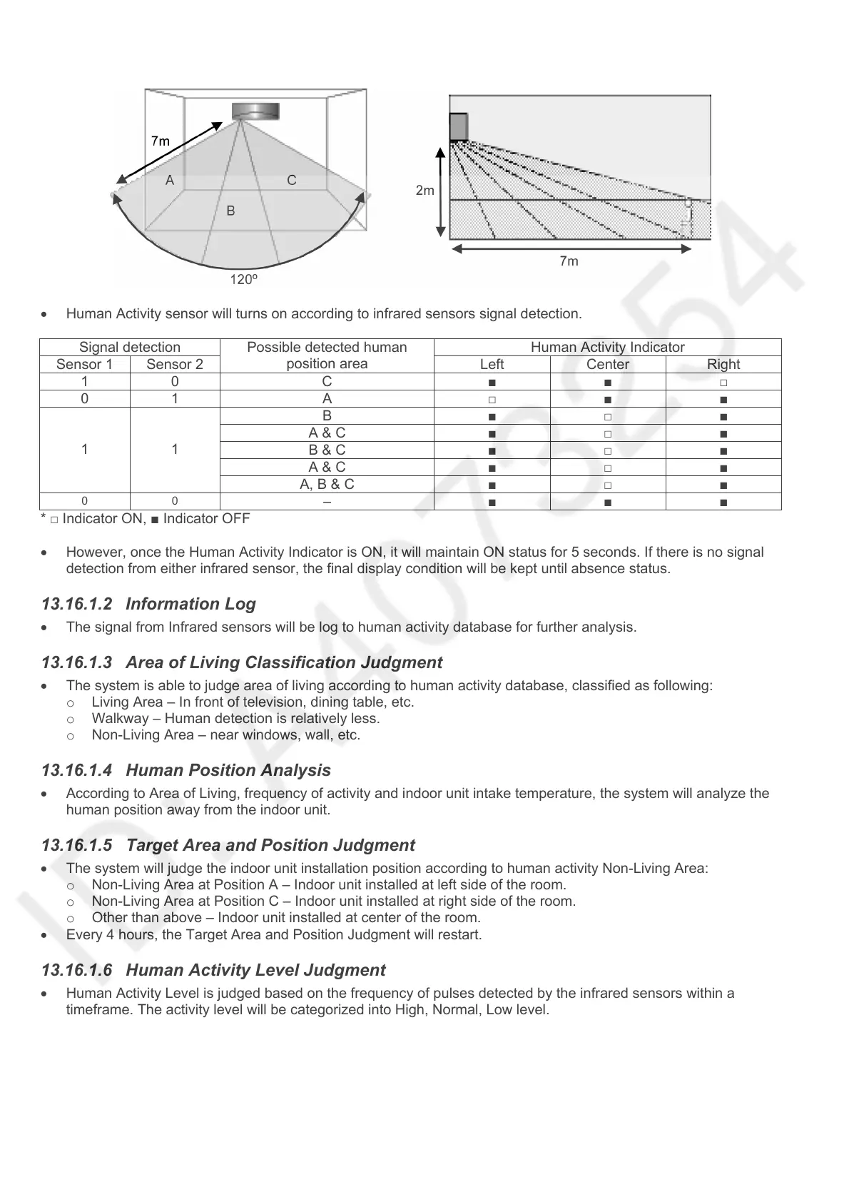 The system will judge the indoor unit installation position according to human activity Non-Living Area: