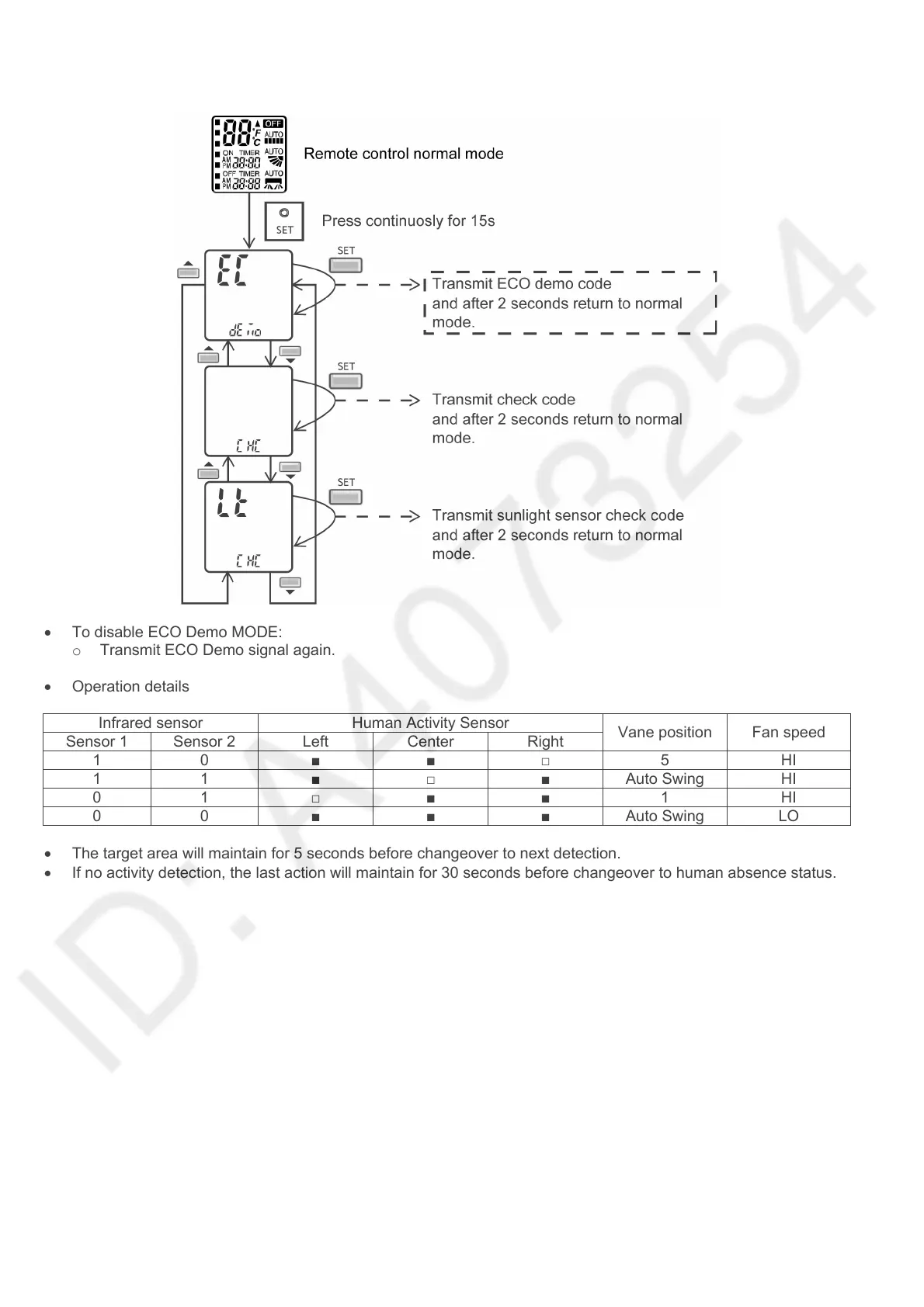 To enable ECO DEMO mode, during unit is OFF (power standby):