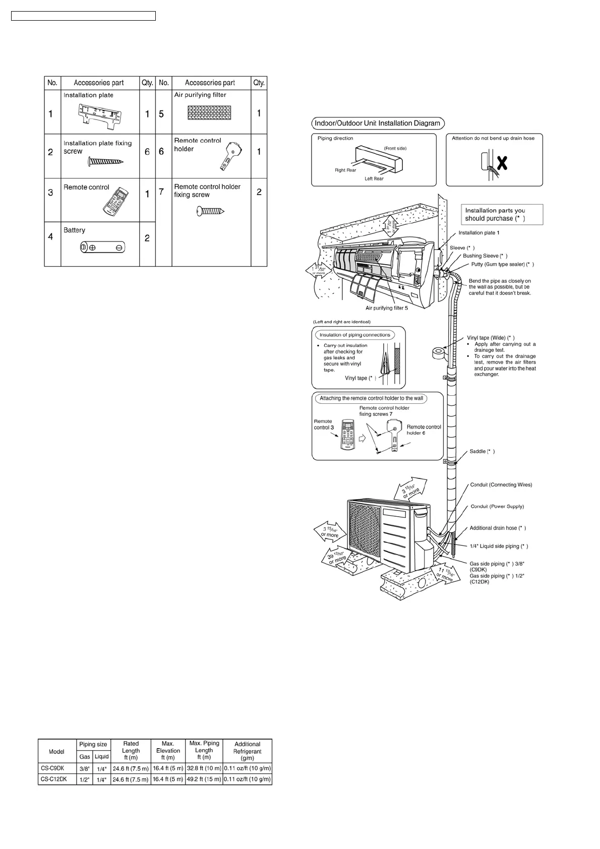 CS-C9DKU CU-C9DKU / CS-C12DKU CU-C12DKU