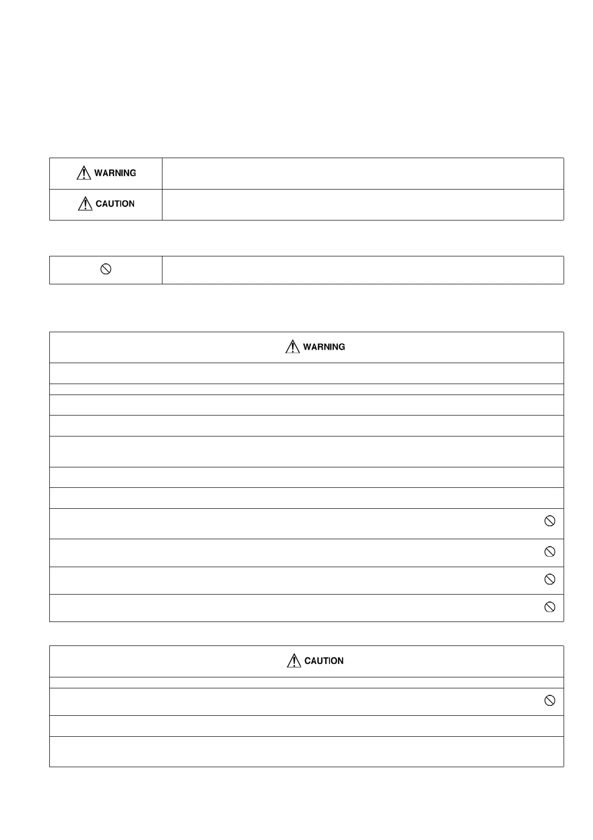 • The caution items stated here must be followed because these important contents are related to safety. The meaning of each