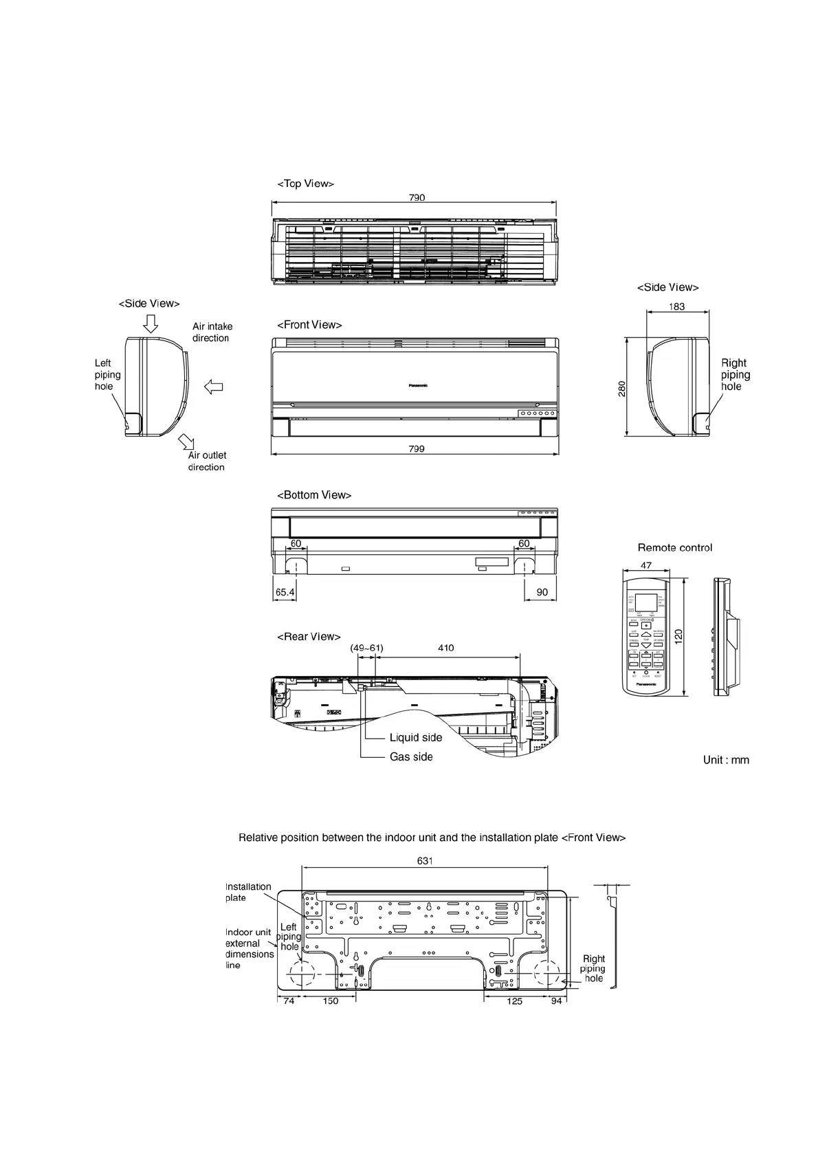 Panasonic CS-C12EKF - 5 Dimensions; Indoor Unit & Remote Control