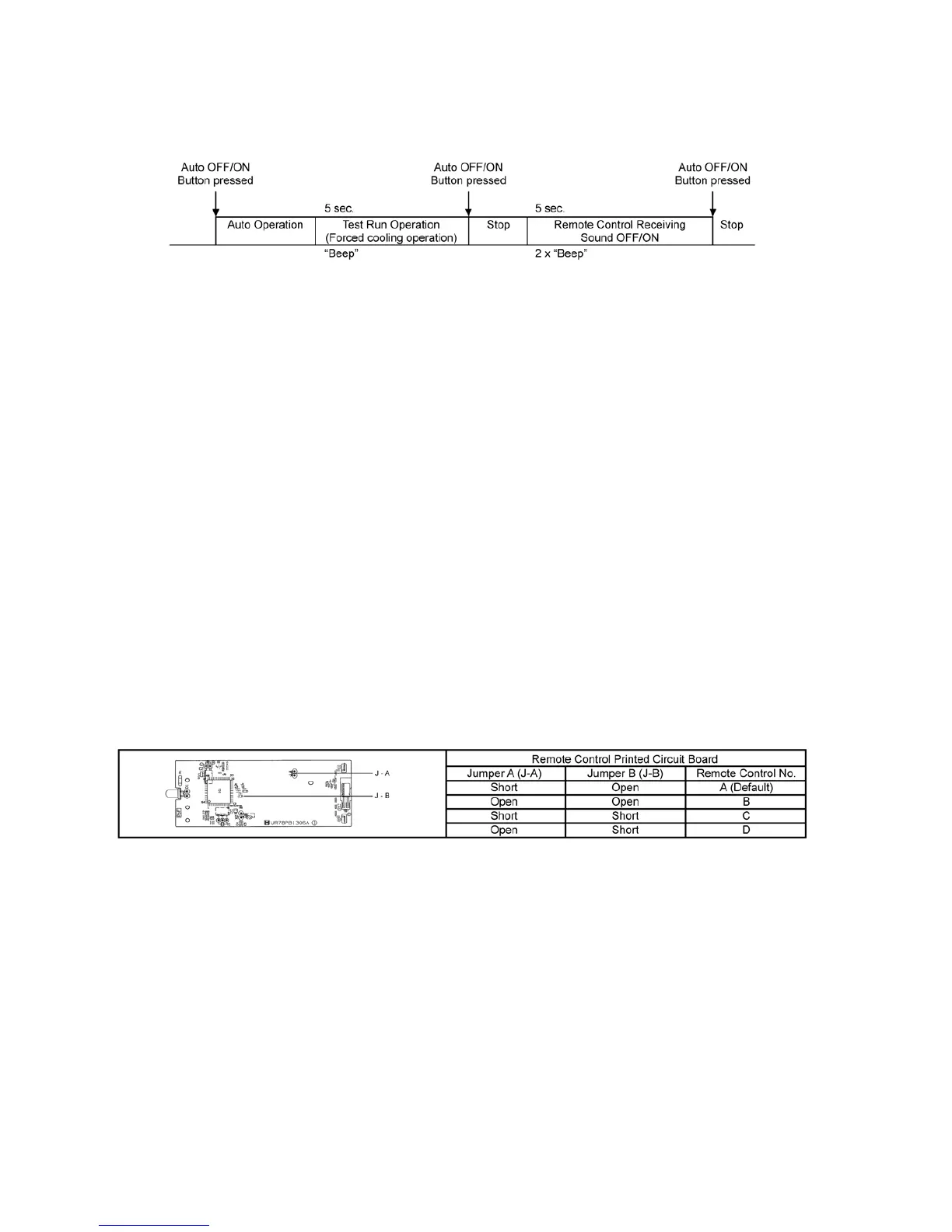 The Test Run operation will be activated if the Auto OFF/ON button is pressed continuously for more than 5 seconds. A “beep”