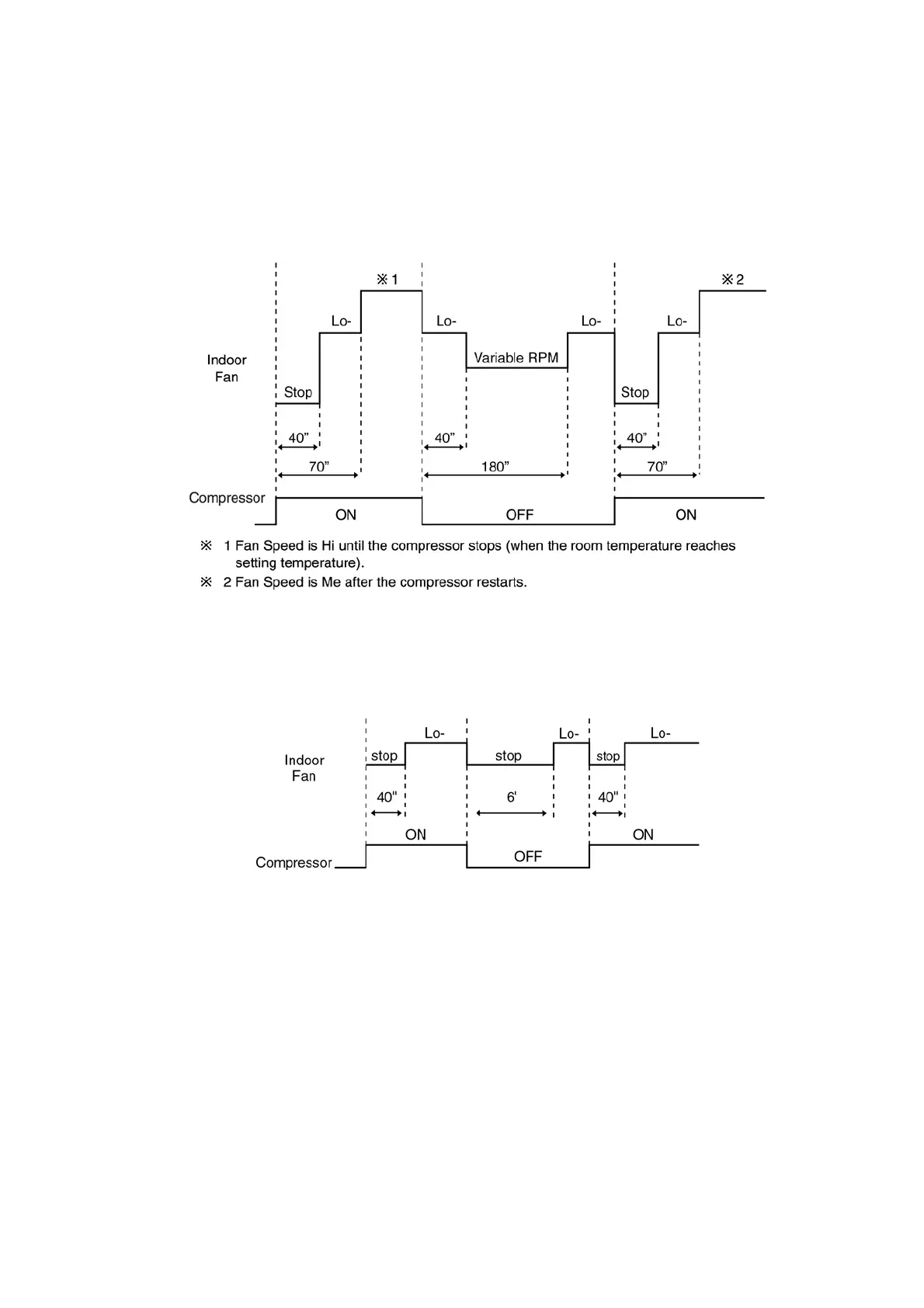 4. During compressor stop, indoor fan will operate at Lo- for the beginning 3 minutes to prevent higher volume of refrigerant