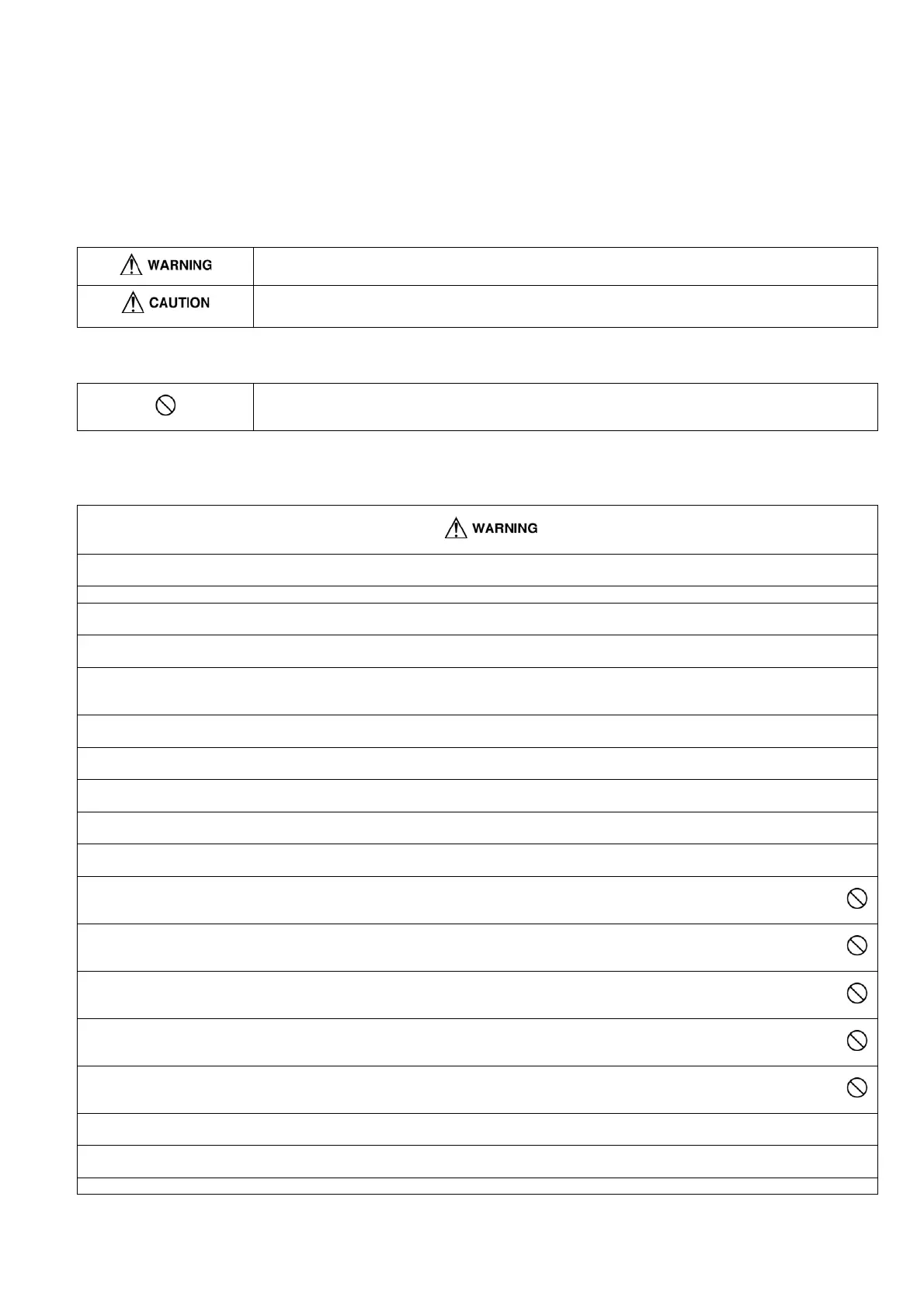 • The caution items stated here must be followed because these important contents are related to safety. The meaning of each