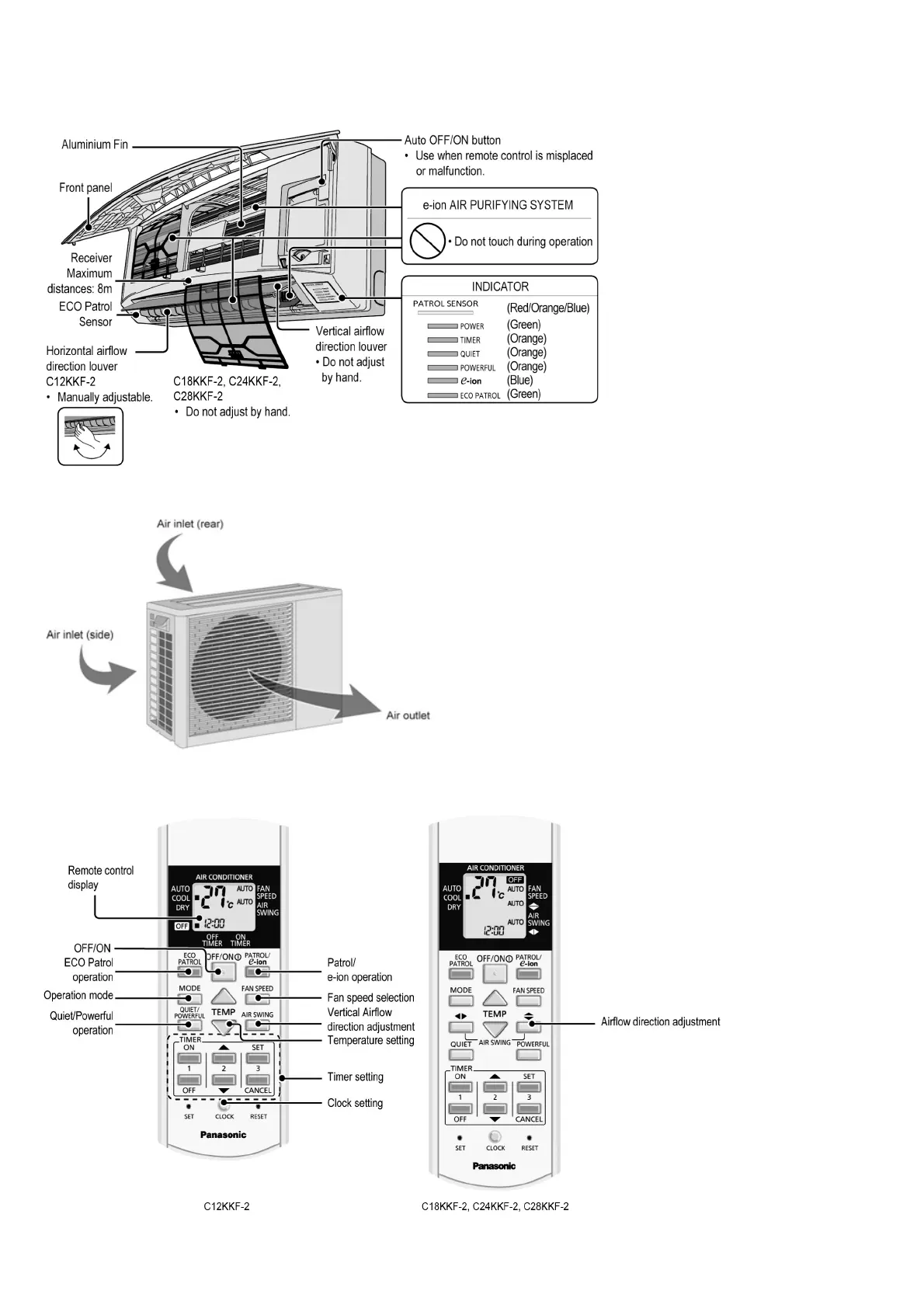 Panasonic CS-C12KKF-2 - Location of Controls and Components; Indoor Unit; Outdoor Unit; Remote Control