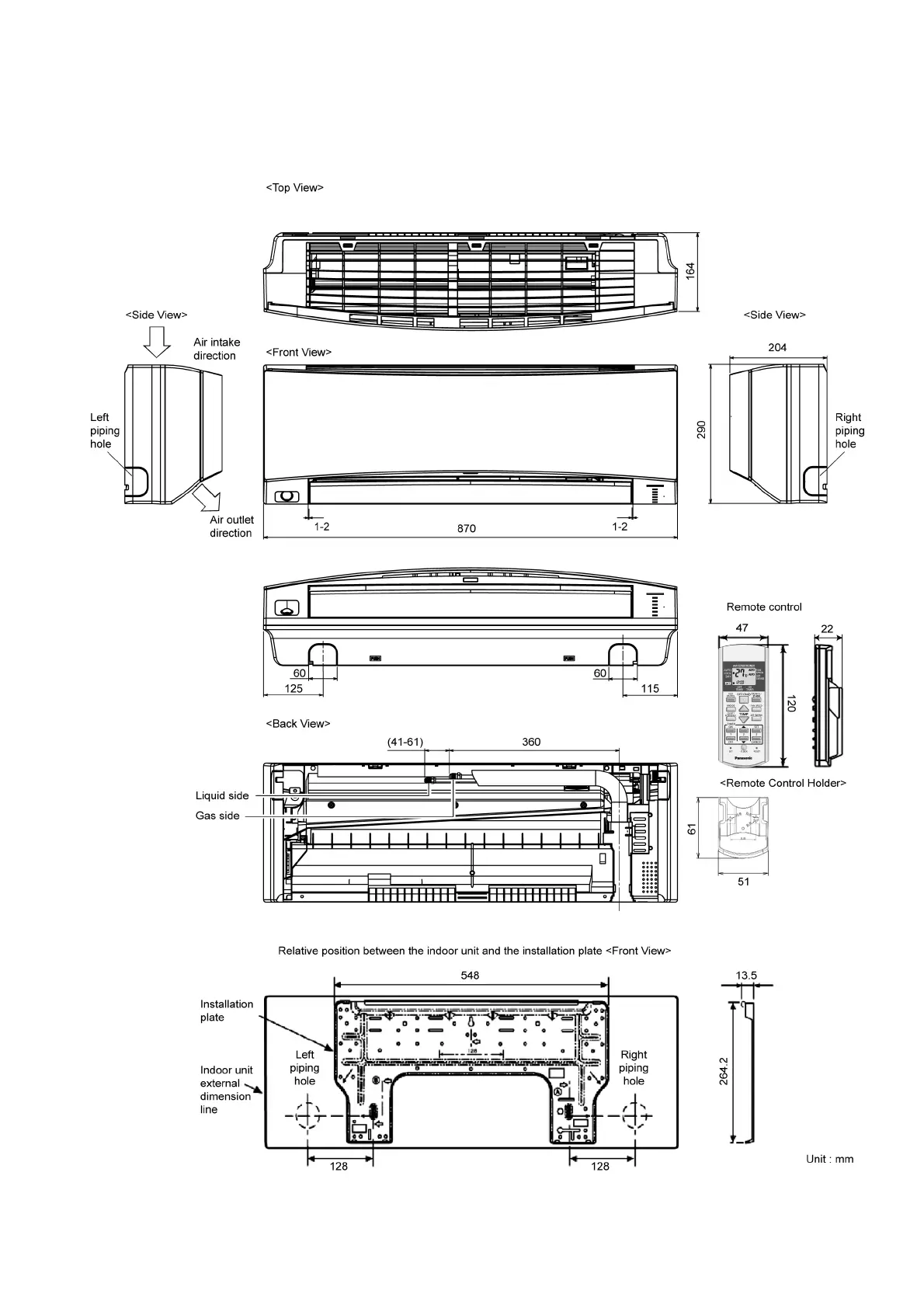Panasonic CS-C12KKF-2 - Dimensions; Indoor Unit
