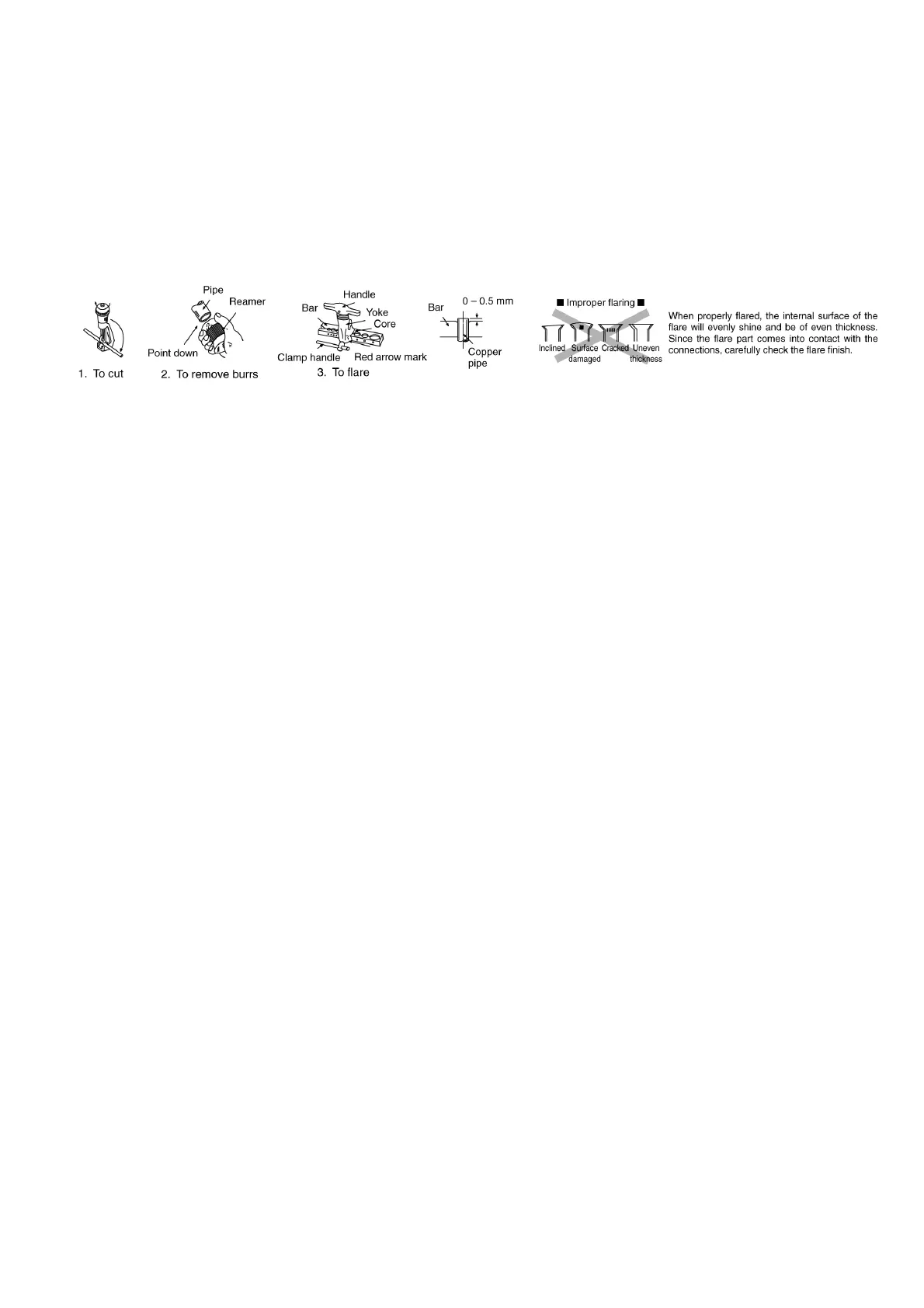 3 Please make flare after inserting the flare nut onto the copper pipes.