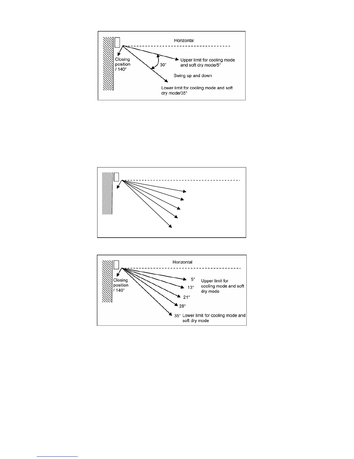 the airflow direction louver move up and down in the range shown in the diagram.