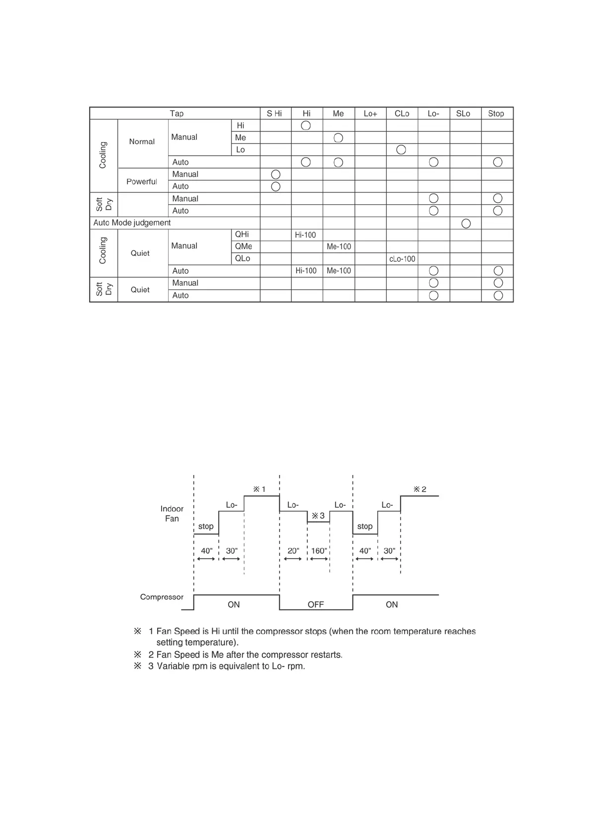 4. During compressor stop, indoor fan will operate at Lo- for the beginning 20 seconds to prevent higher volume of refrigerant
