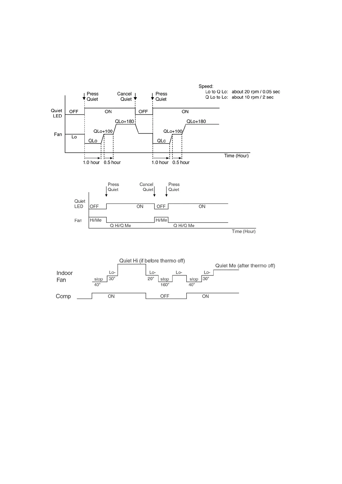 • Once the Quiet Mode is set at the remote control, the Quiet Mode LED illuminated. The sound level will reduce around 2 dB (A)