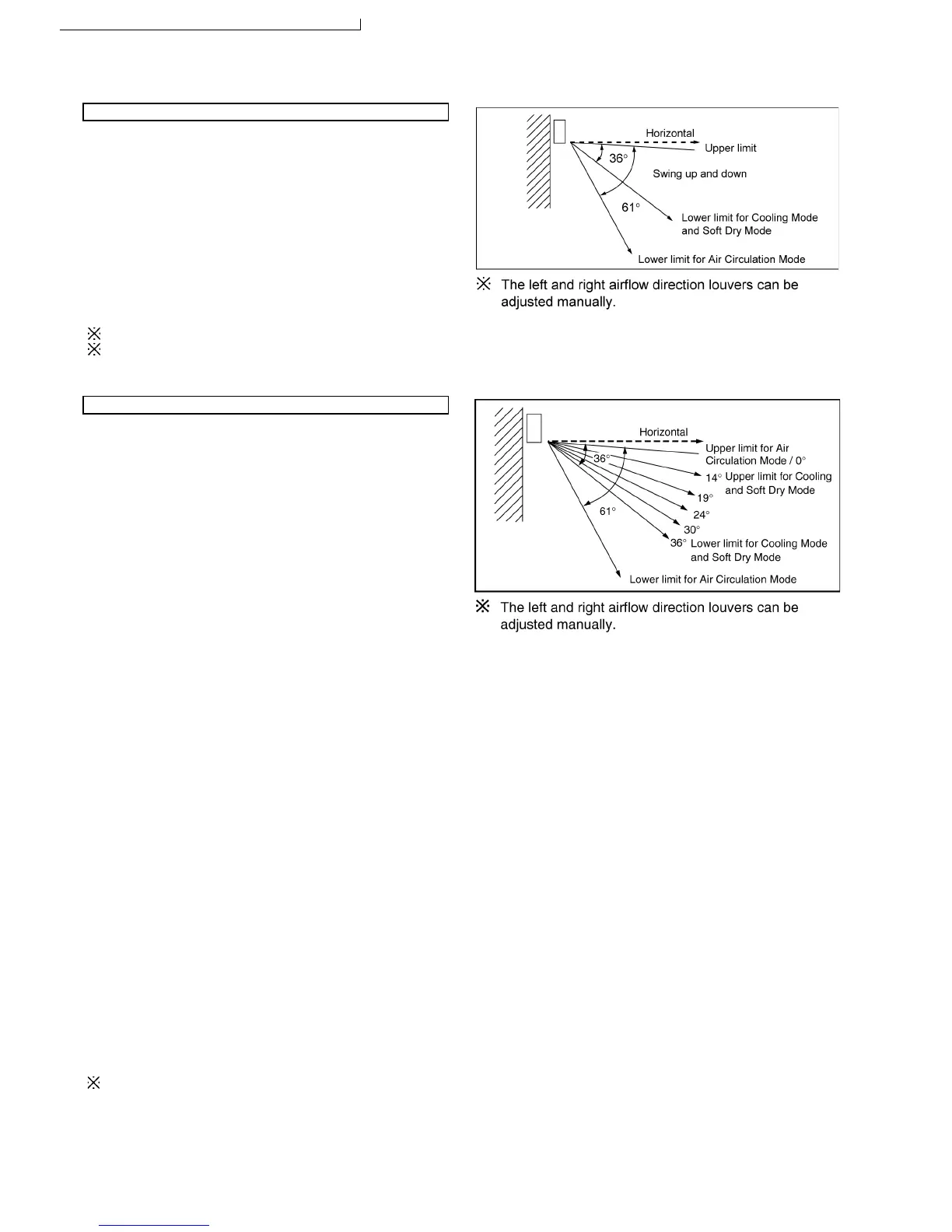 1. There is no swinging while indoor fan is stopped during Cooling and Soft Dry operation.