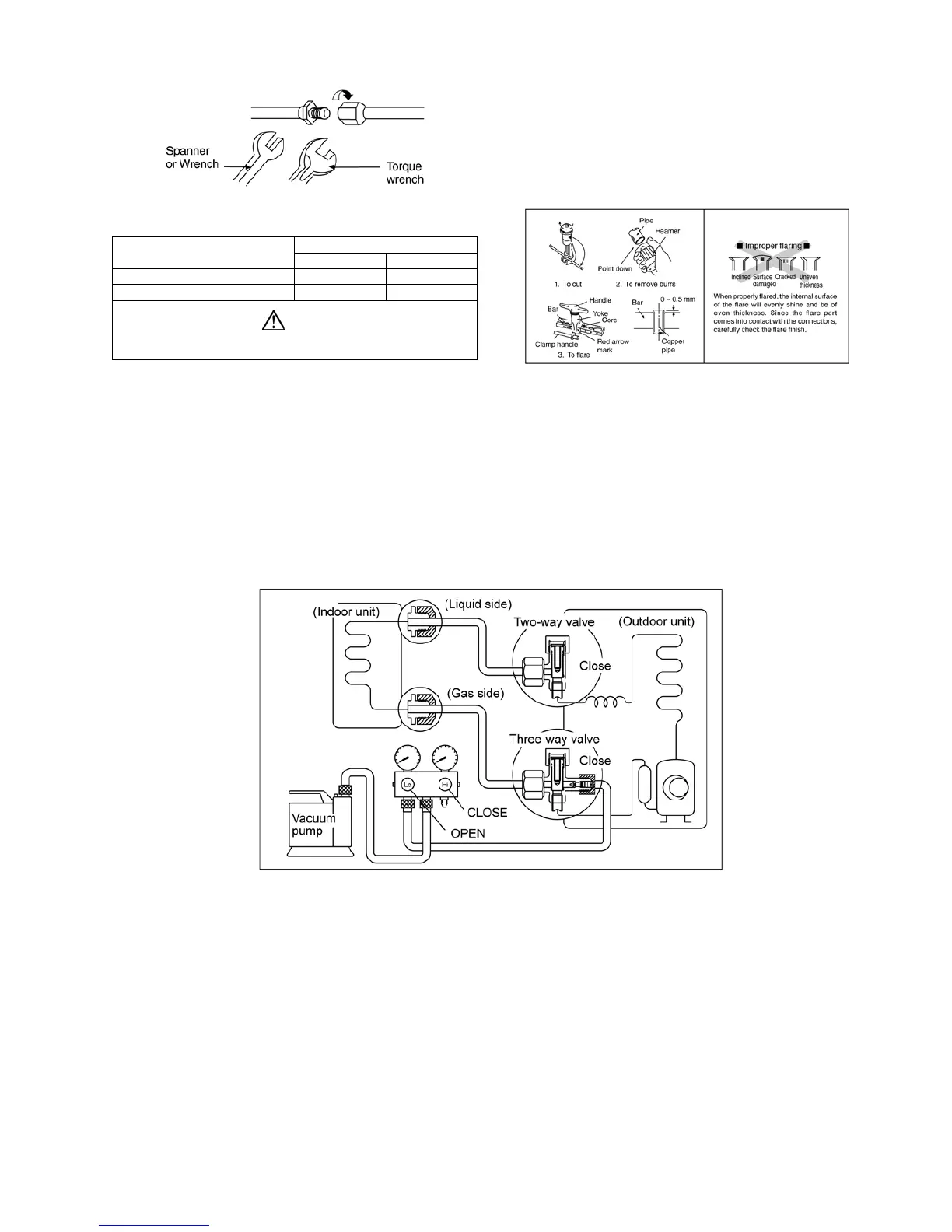 7. Remove the valve caps of both of the 2-way valve and 3-way valve. Position both of the valves to “OPEN” using a hexagonal
