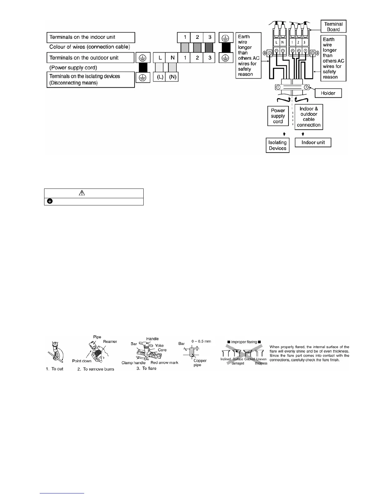 3 Please make flare after inserting the flare nut onto the copper pipes.
