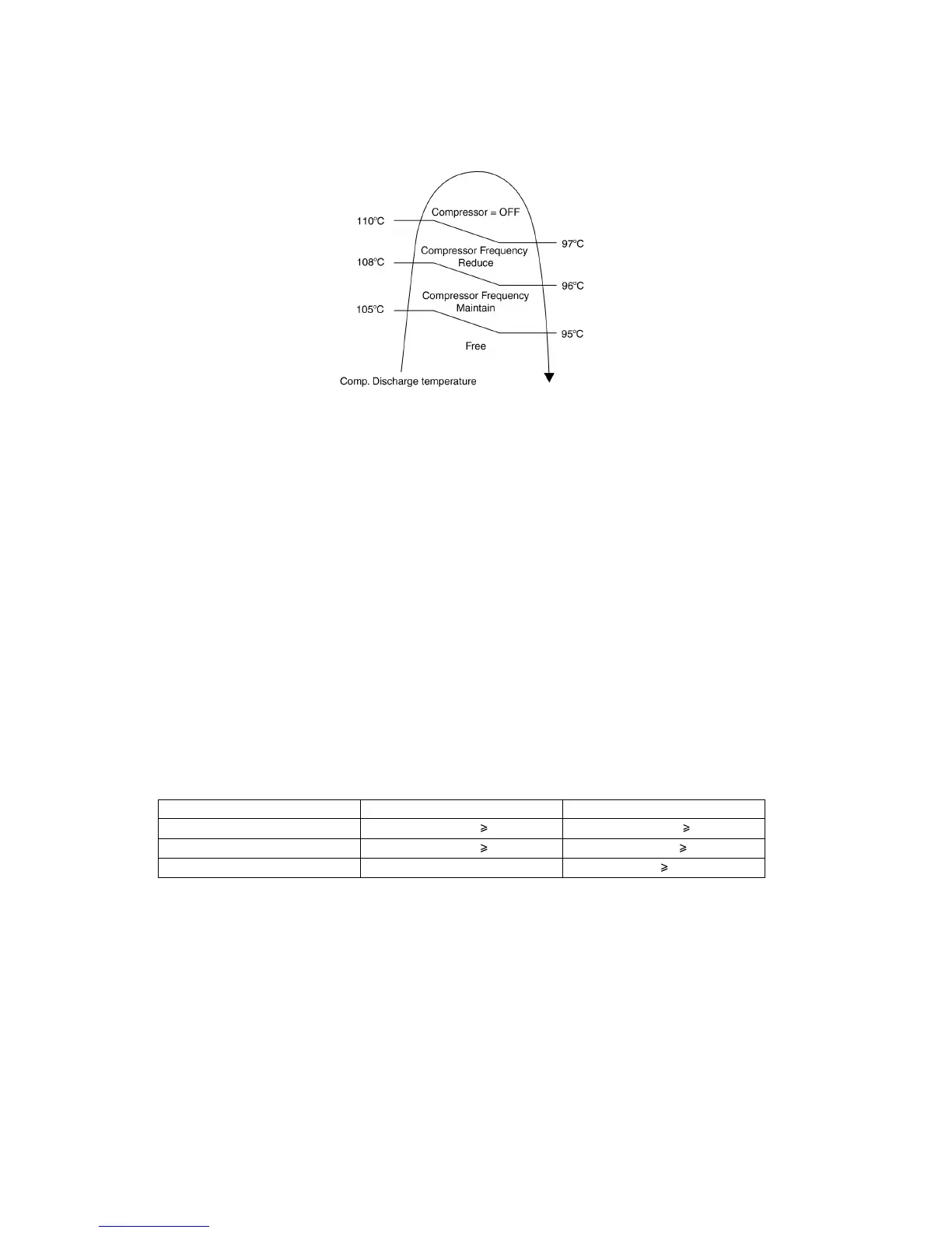 • Instructed frequency for compressor operation will be regulated by compressor discharge temperature. The changes of