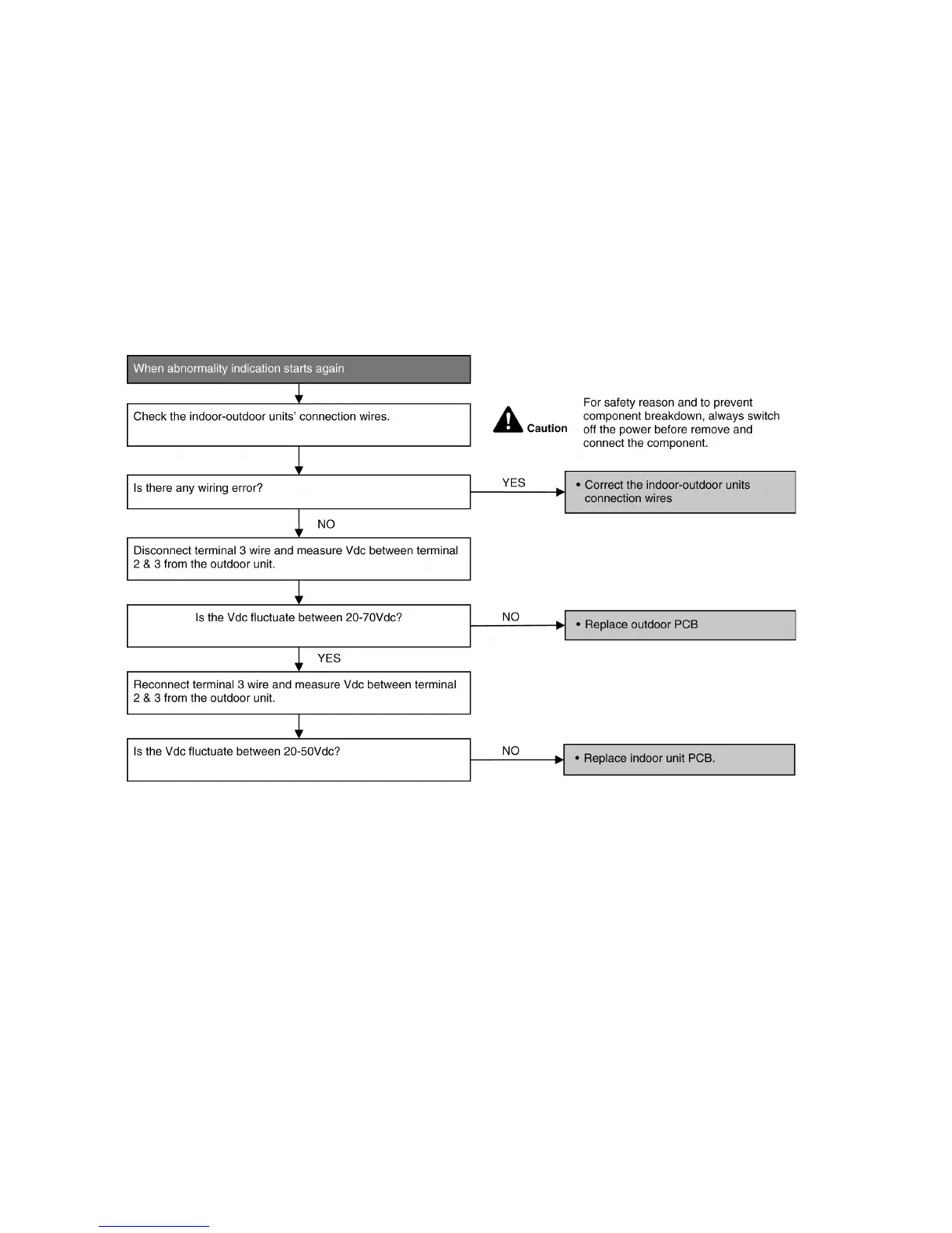 • Indoor unit-outdoor unit signal transmission error due to wrong wiring.