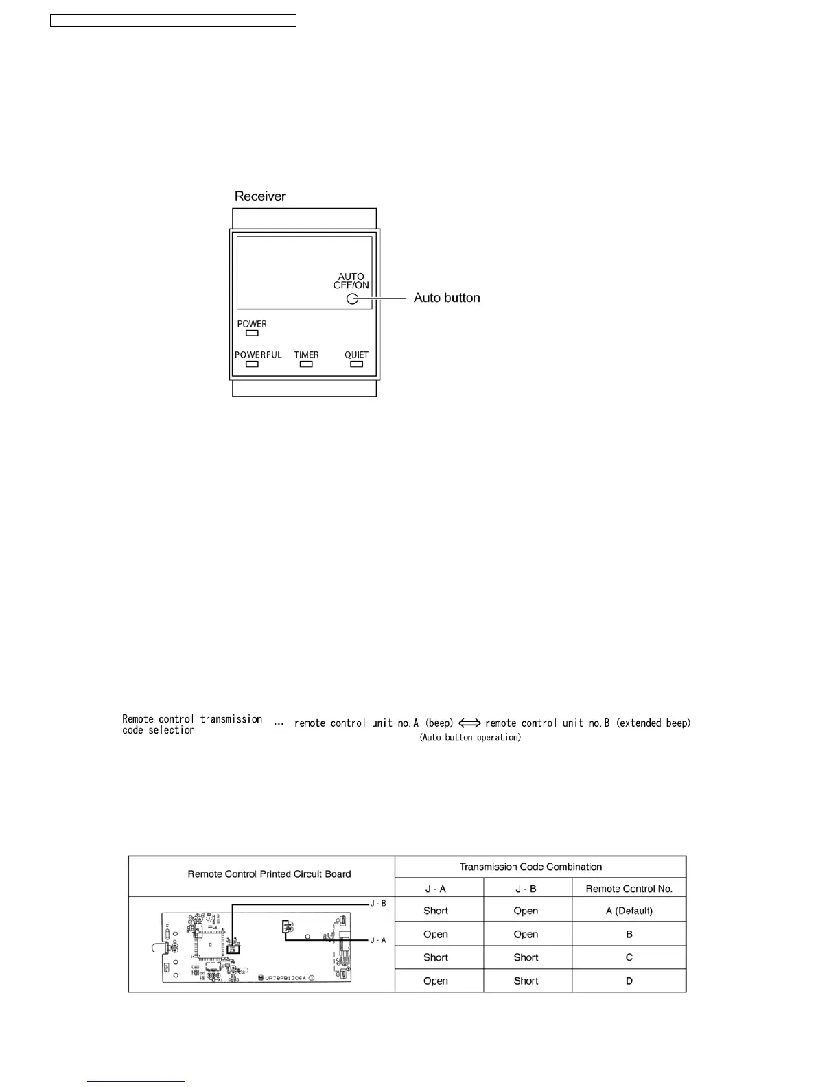 To change remote control transmission code, short or open jumpers at the remote control printed circuit board.