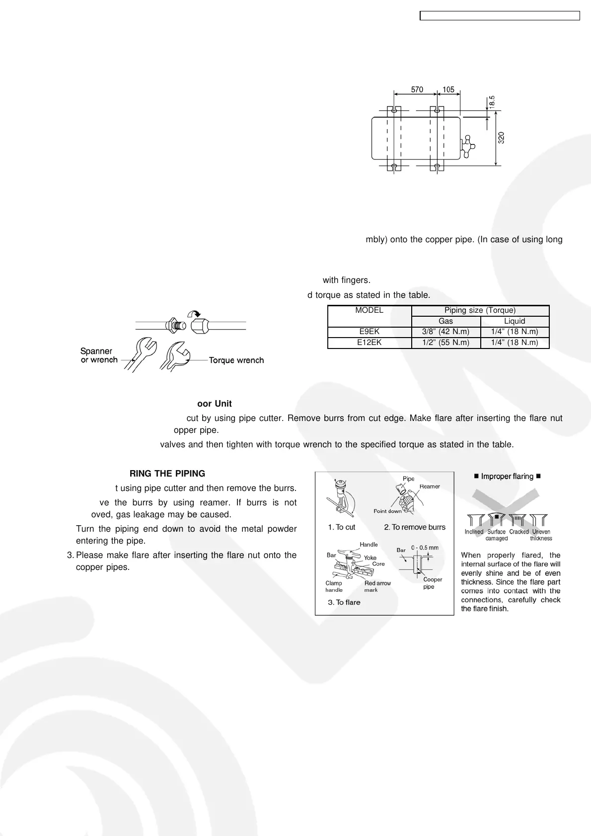 Decide piping length and then cut by using pipe cutter. Remove burrs from cut edge. Make flare after inserting the flare nut