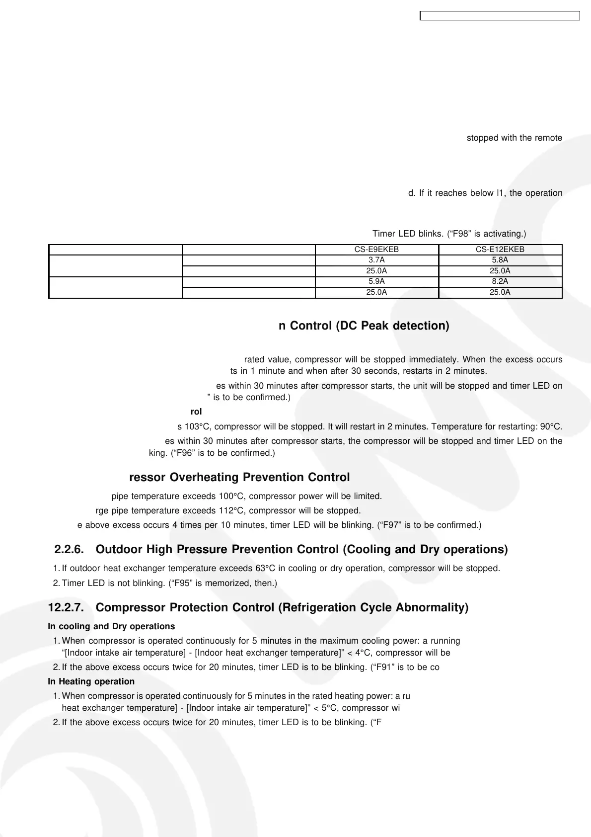 • If inverter load current (DC peak) exceeds a rated value, compressor will be stopped immediately. When the excess occurs