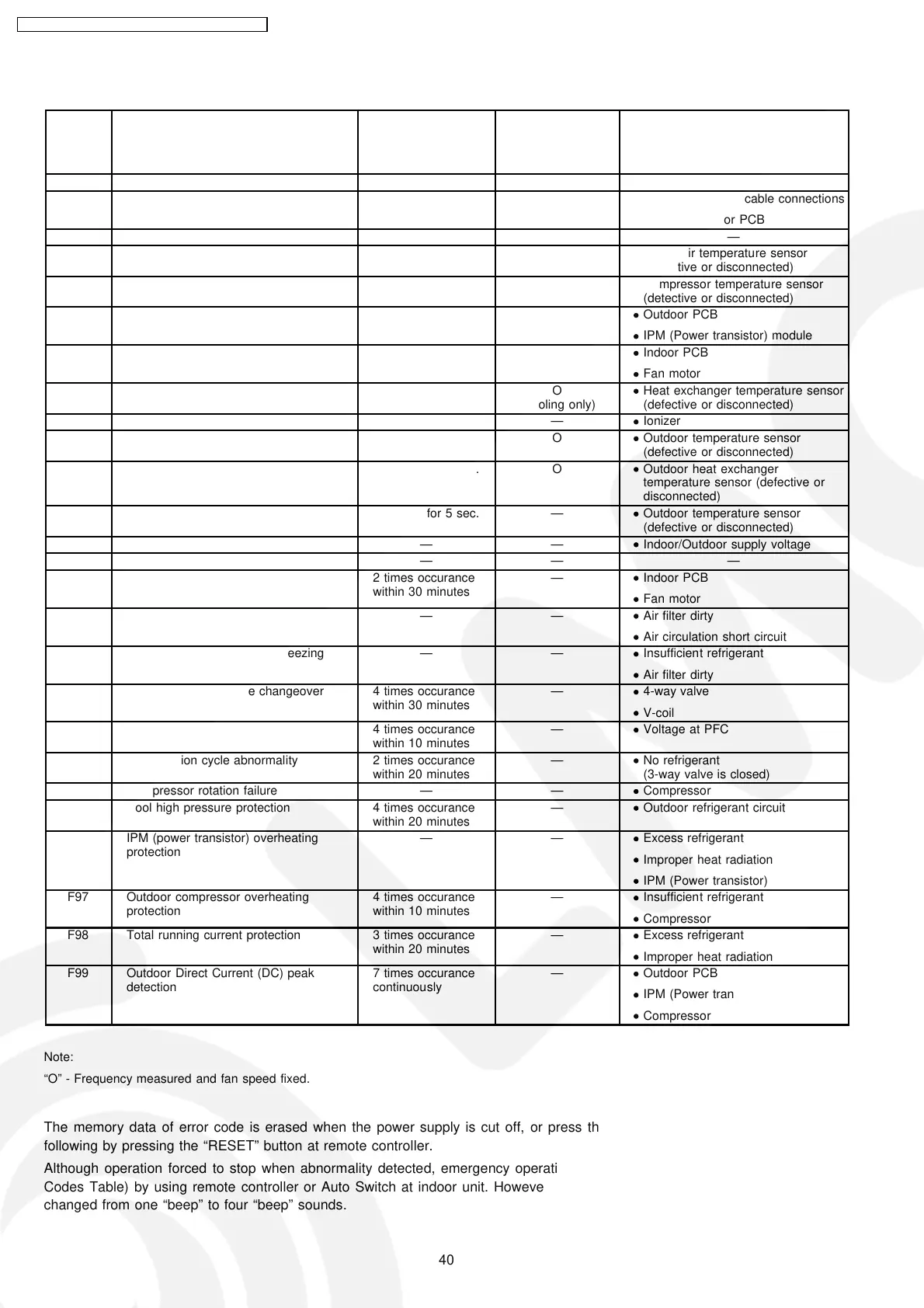 Codes Table) by using remote controller or Auto Switch at indoor unit. However, the remote controller signal receiving sound is