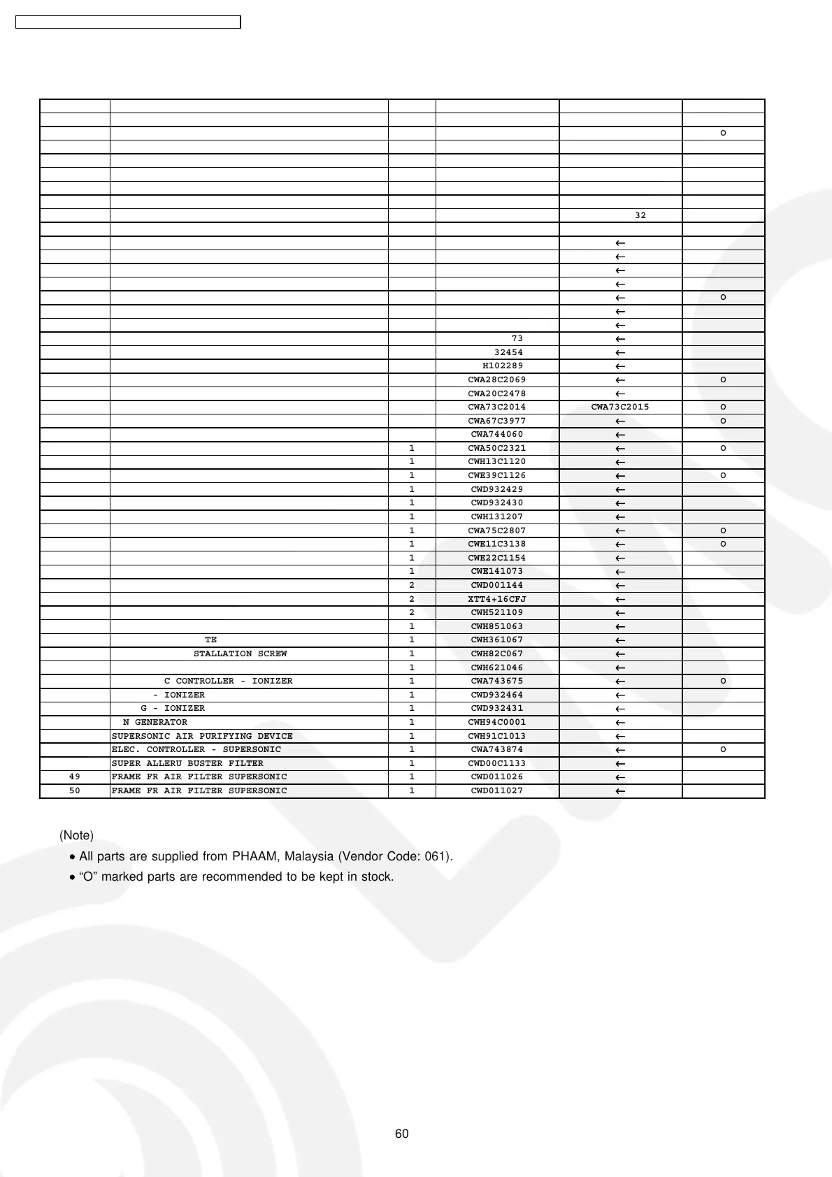 • All parts are supplied from PHAAM, Malaysia (Vendor Code: 061).