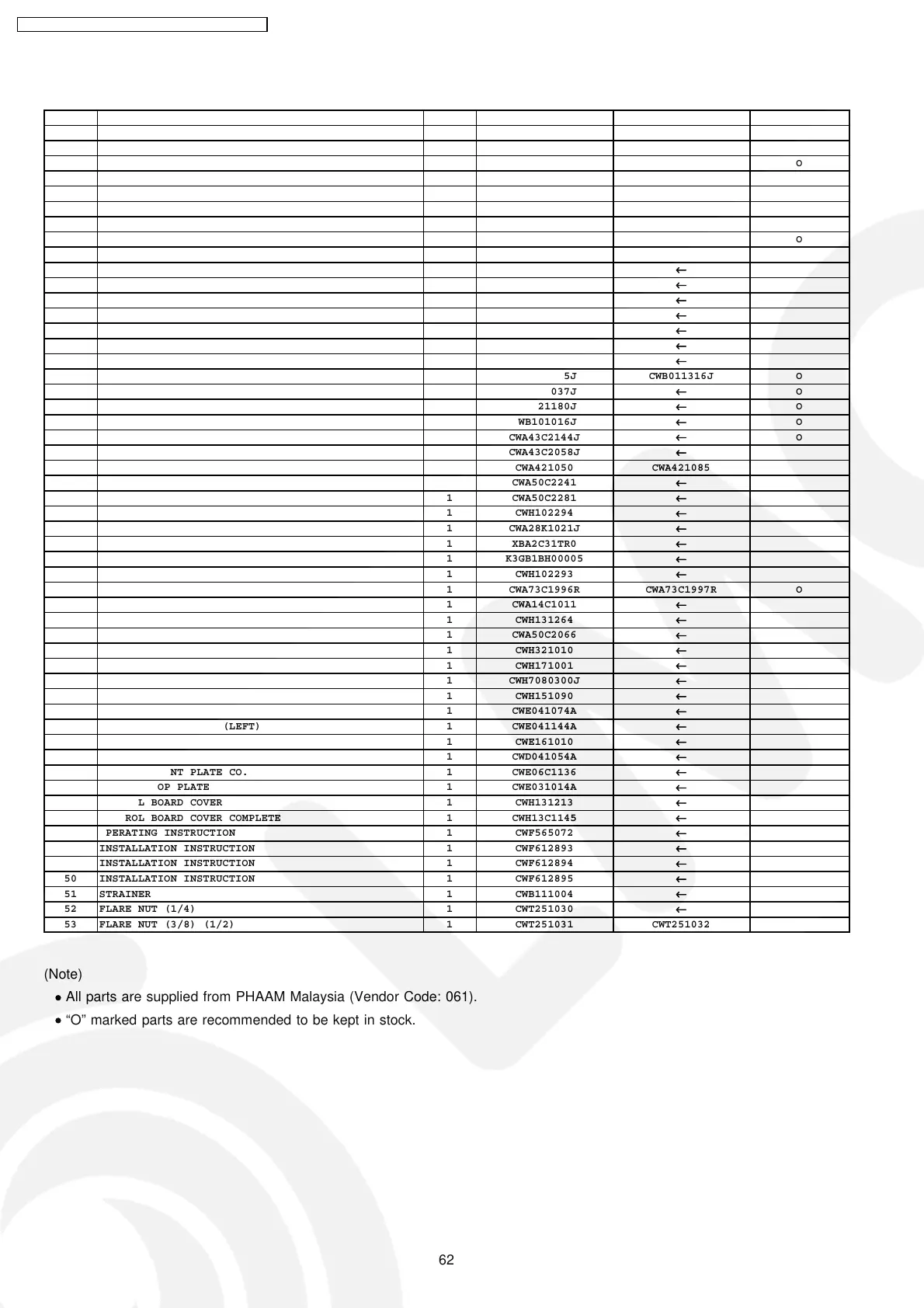 • All parts are supplied from PHAAM Malaysia (Vendor Code: 061).