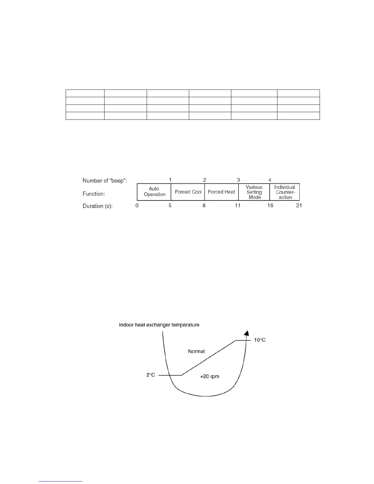 1. When indoor heat exchanger temperature is lower than 2qC continuously for six minutes, compressor will stop operating.