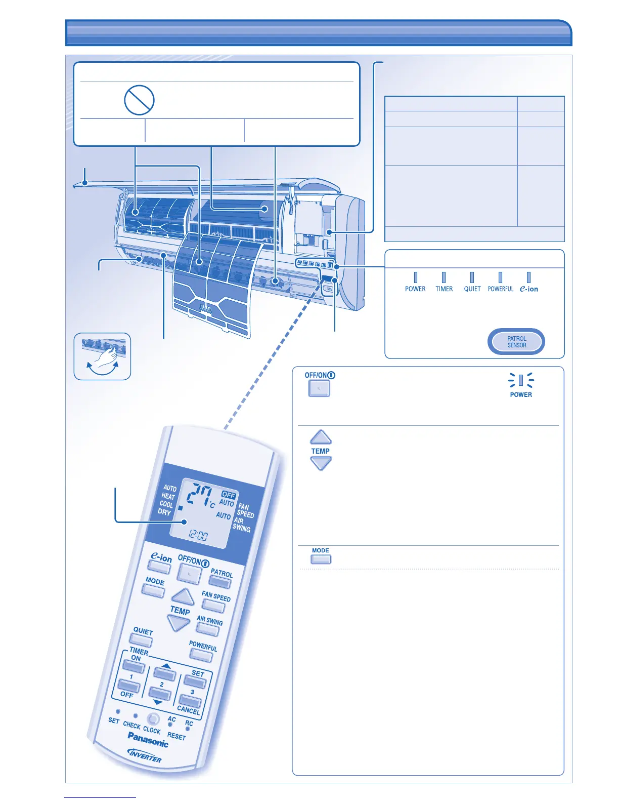 • Let s.v.p. goed op de OFF-indicatie op de afstandsbediening, om te