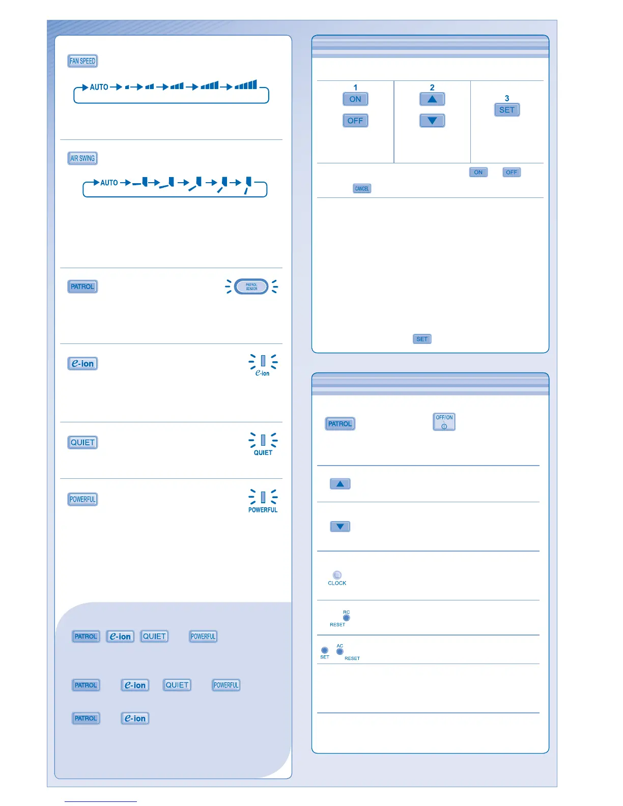 Panasonic CS-E12HKR - Fan Speed and Airflow Direction; Air Quality and Special Modes; Timer and Optional Settings