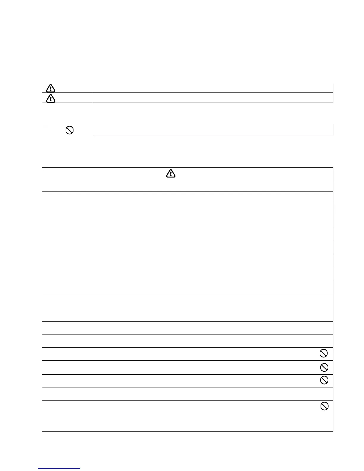 • The caution items stated here must be followed because these important contents are related to safety. The