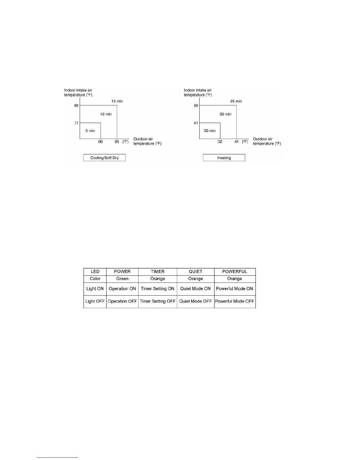• 60 minutes before the set ON time, indoor (at fan speed of Lo-) and outdoor fan motor start operation for 30