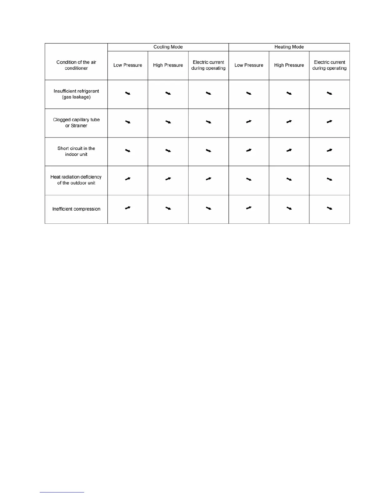 16.1.1 Relationship between the condition of the air conditioner and pressure and