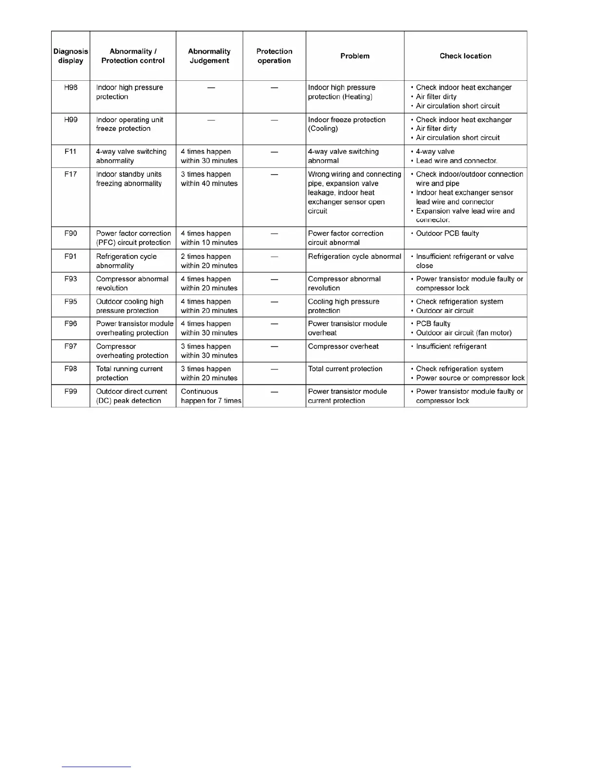 (refer to Error Code Table) by using remote control or Auto OFF/ON button at indoor unit. However, the remote