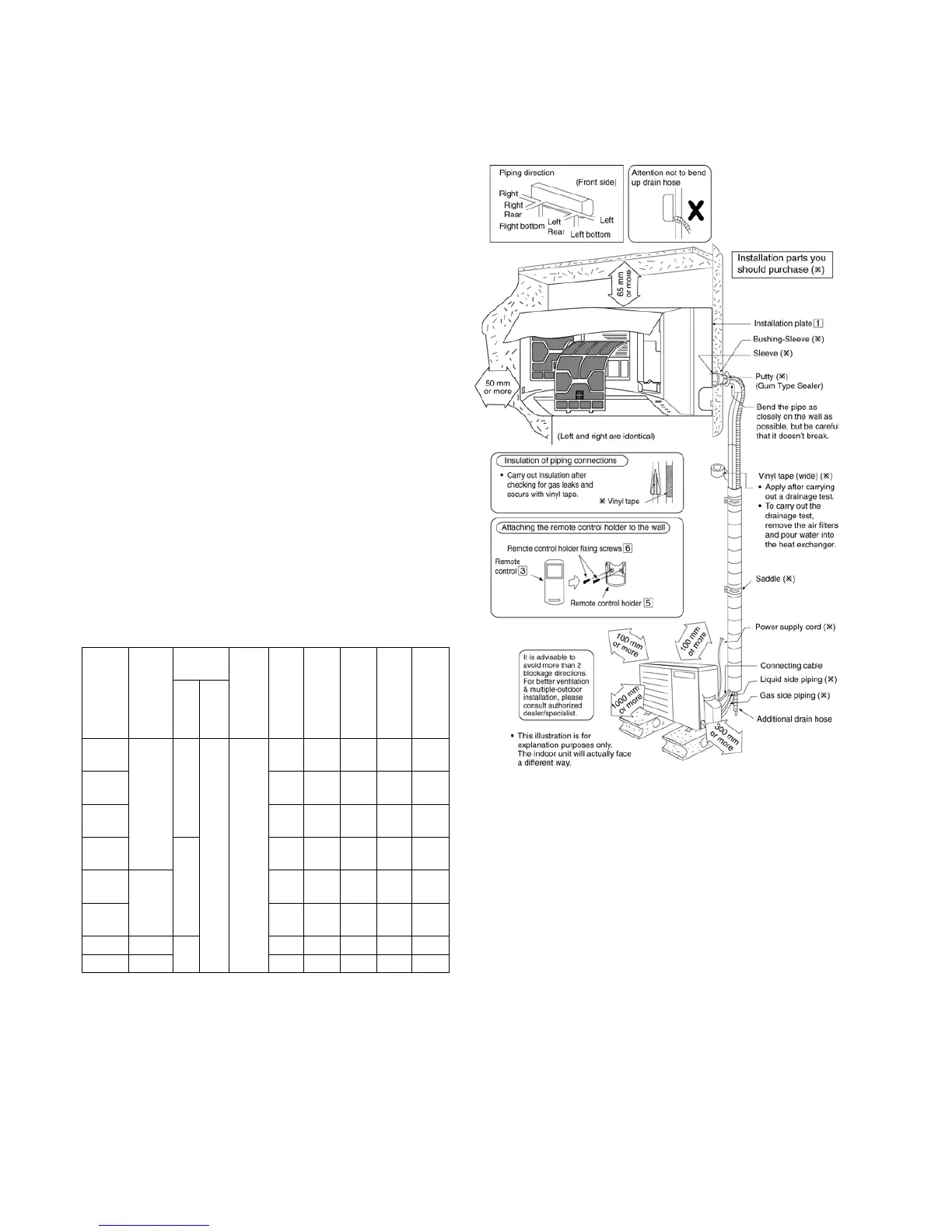 rain, be careful that heat radiation from the condenser is not