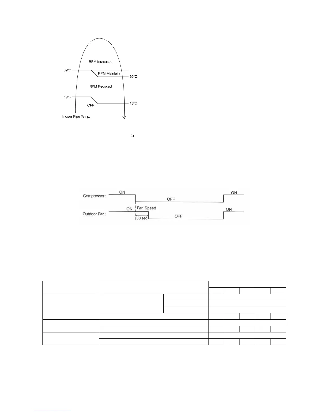 • According to indoor pipe temperature, automatic heating fan speed is determined as follows.