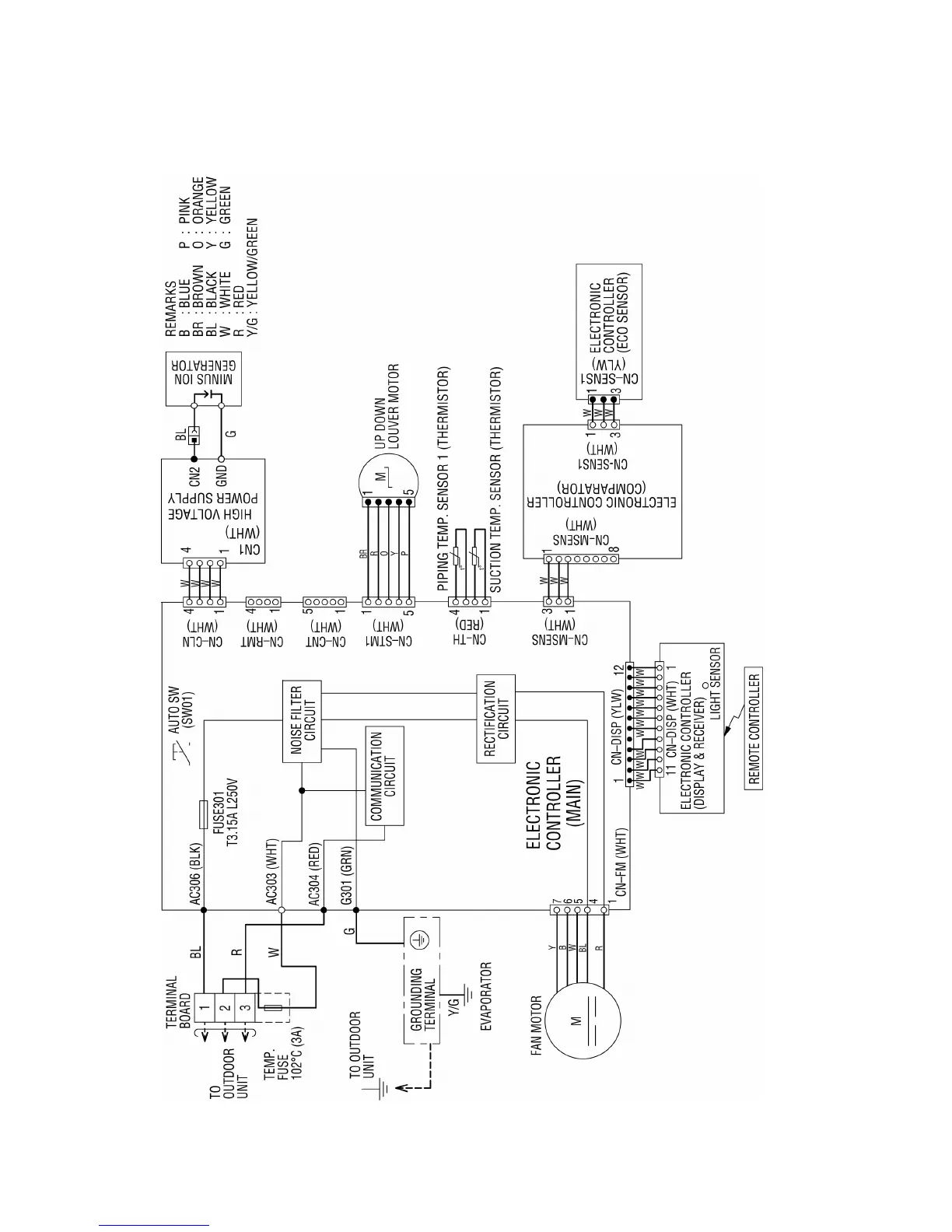 Panasonic CS-E12NKDW - Wiring Connection Diagrams; Indoor Unit Wiring Diagram