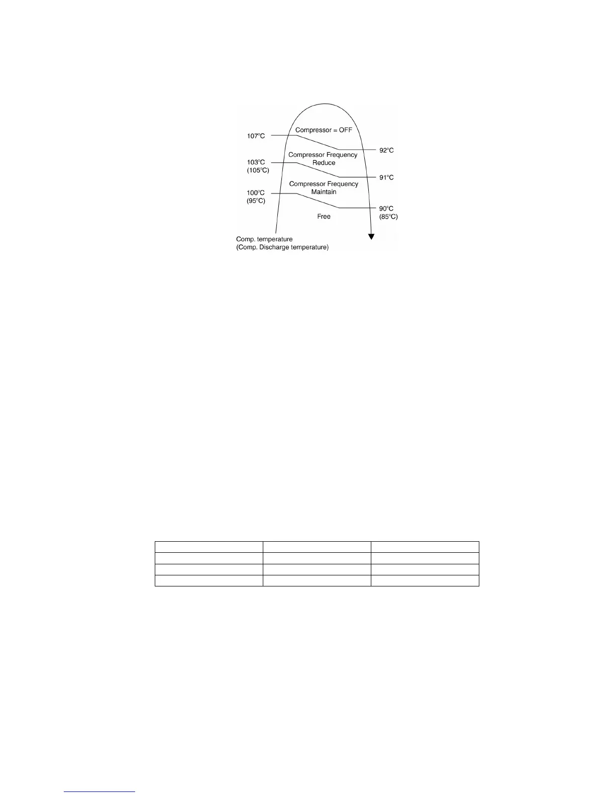 Instructed frequency for compressor operation will be regulated by compressor discharge temperature. The
