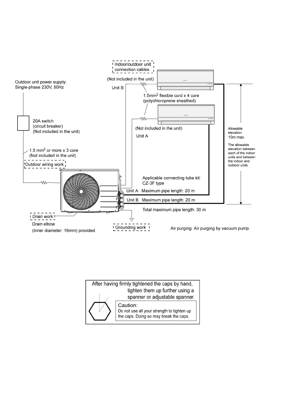Firmly tighten the 3-way valve caps by hand, and then tighten them up by another 30 degrees or so (one-twelfth
