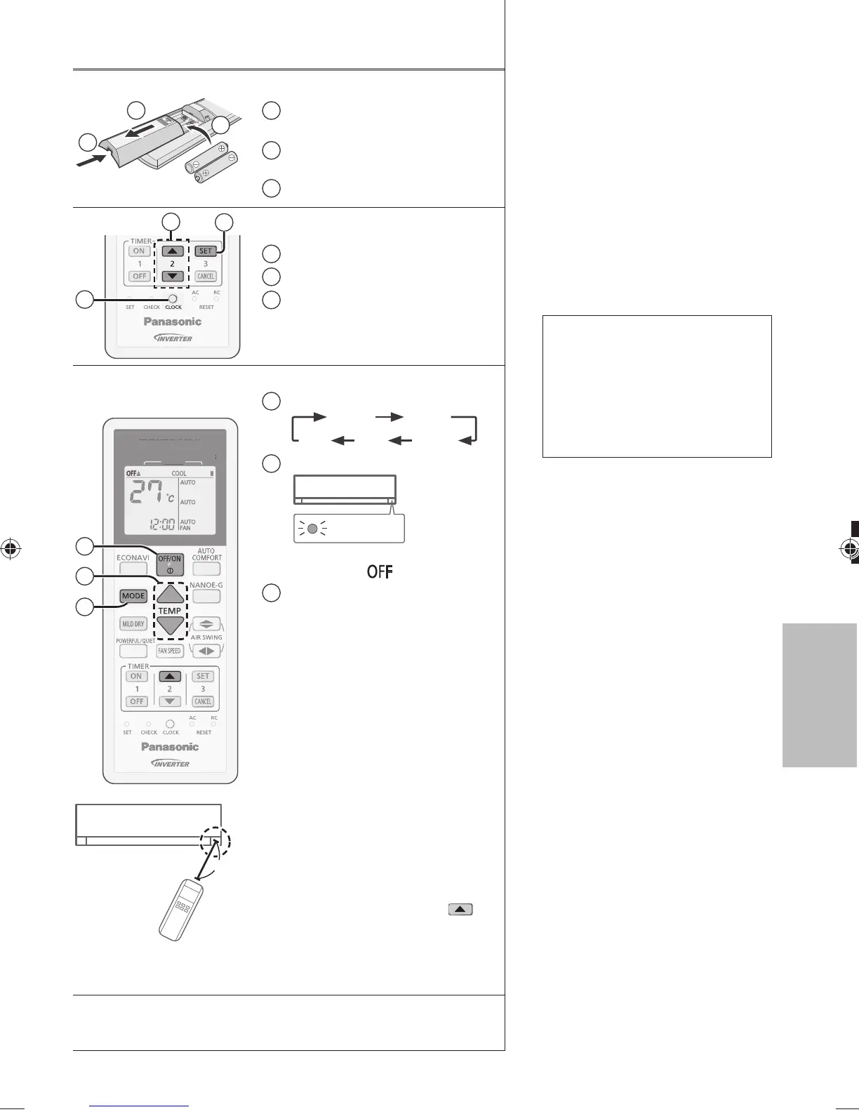 Panasonic CS-E12PKR - Quick Guide to Air Conditioner Operation; Inserting Remote Control Batteries; Setting the Clock on the Remote; Basic Operation Steps