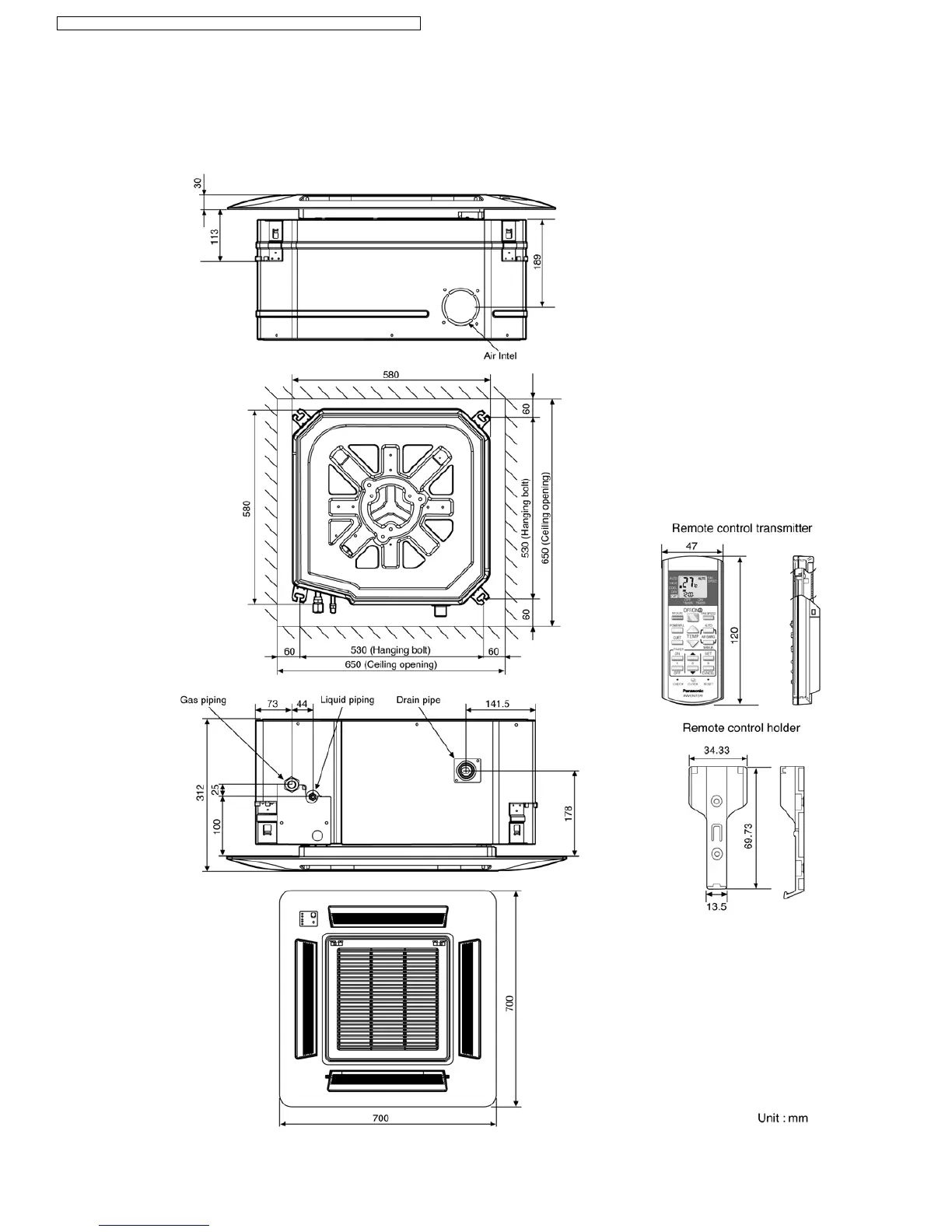 Panasonic CS-E15DB4EW - 4 Dimensions; Indoor Unit & Remote Control