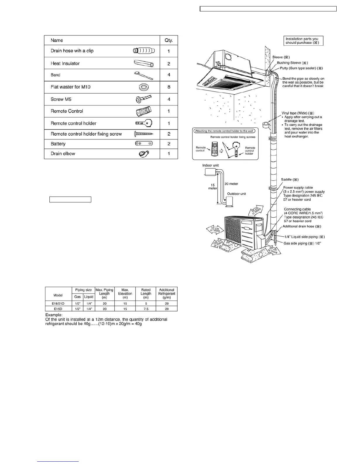 • If piping length is over 10m, additional refrigerant