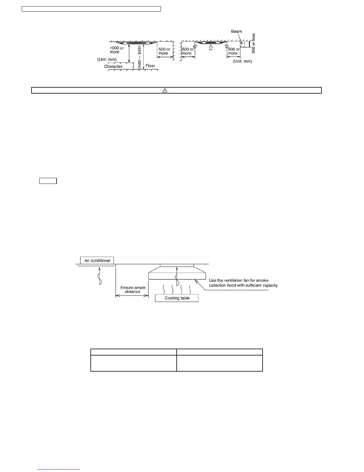 − Make enough distance from the cooking room to install the air conditioner in such place where it may not suck in oily