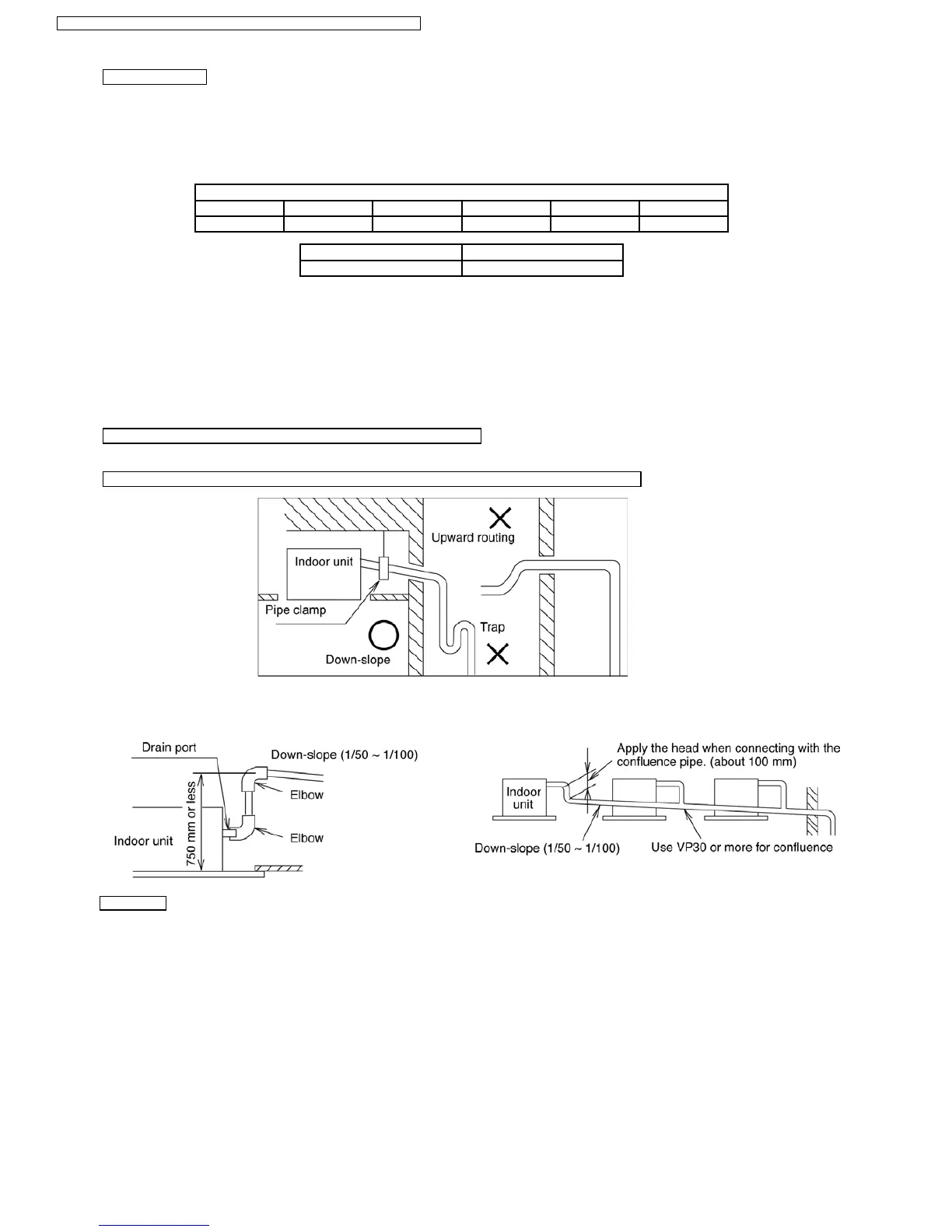 Drain piping must have down-slope (1/50 to 1/100); be sure not to provide up-and-down slope to prevent reversal flow.