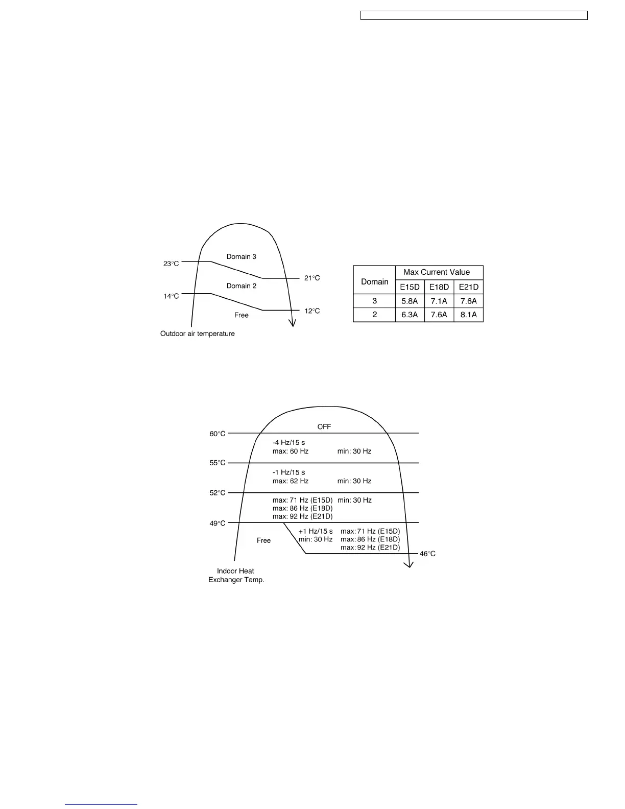 The compressor operating frequency is regulated in accordance to indoor heat exchanger temperature as shown in below figures.