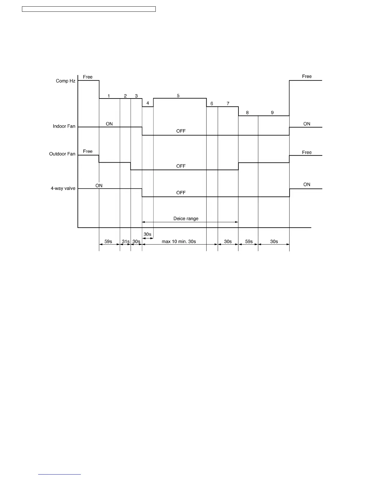 Deice starts to prevent frosting at outdoor heat exchanger.