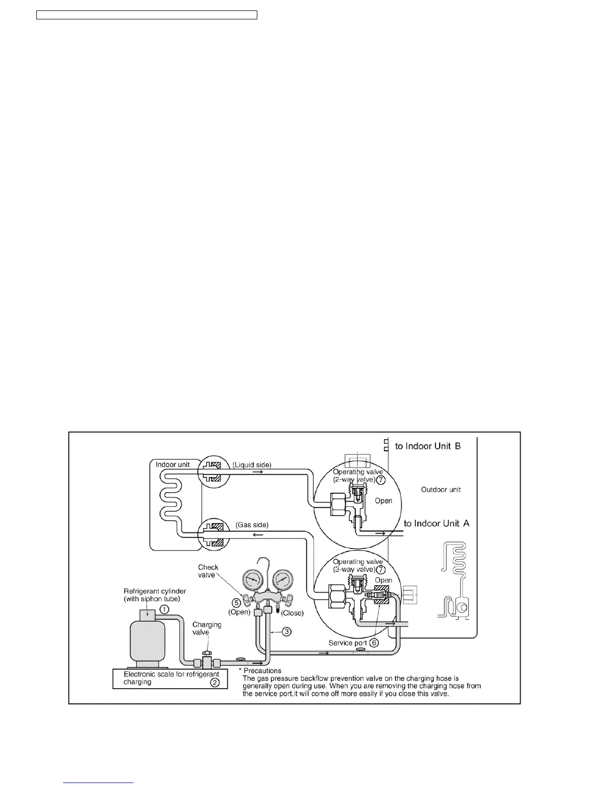 Never use the gas side to allow a larger amount of liquid refrigerant to be charged while operating the unit.