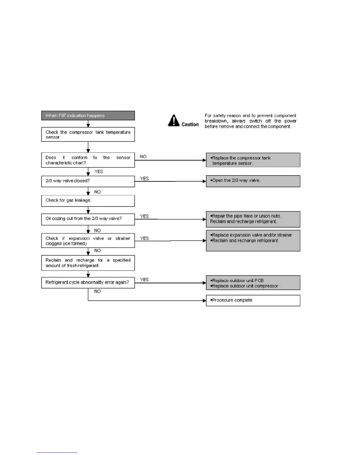 During operation of cooling and heating, when compressor tank temperature data (112°C) is detected by the
