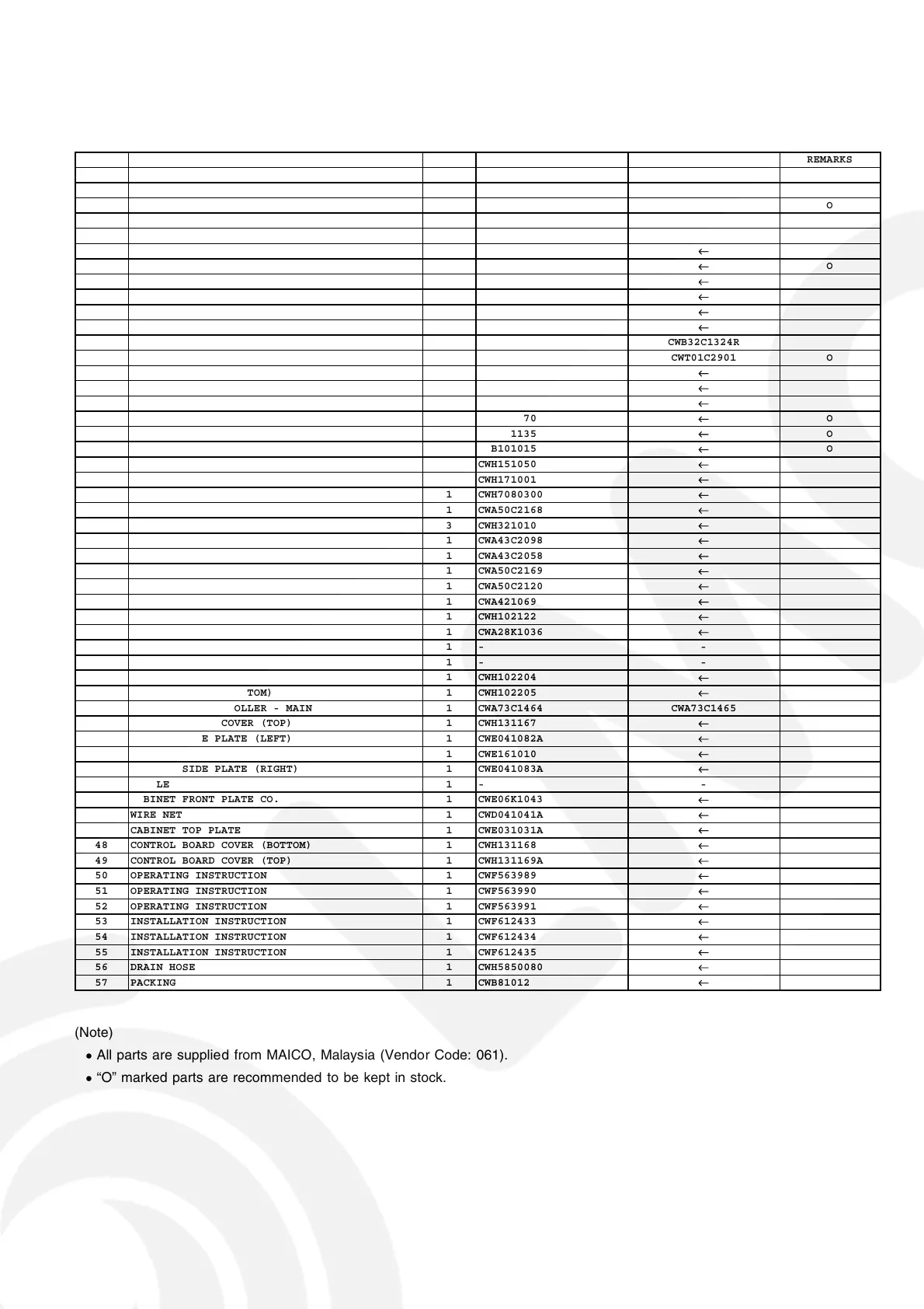 All parts are supplied from MAICO, Malaysia (Vendor Code: 061).