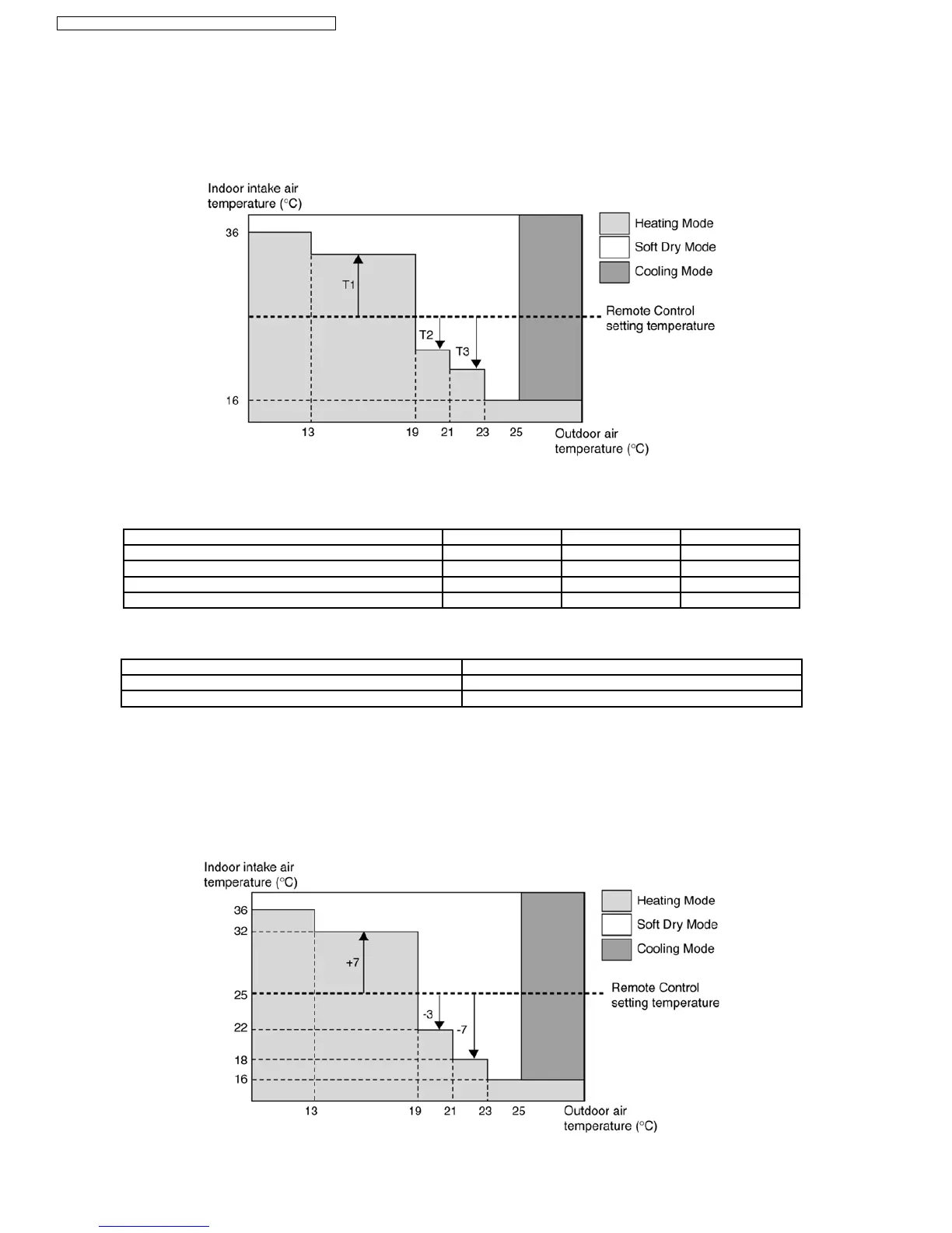 There is a temperature shifting on T1, T2, and T3 if the operation mode judged is changed from Cooling/Soft Dry to Heating or vice